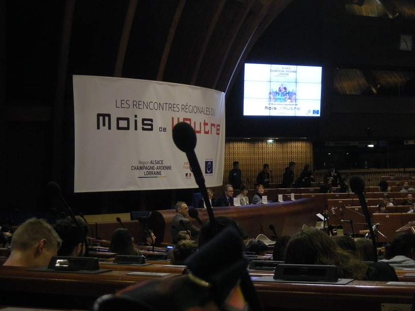 Le jeudi 28 avril 2016, les élèves de la classe de 2PIBM se sont rendus au Conseil de l’Europe pour la journée de clôture des actions du “Mois de l’Autre”. Un grand moment de partage et de dialogue autour du thème de la laïcité. Les élèves ont pu découvrir à cette occasion l’hémicycle des députés avec leurs professeures Mmes Méry et Remy.