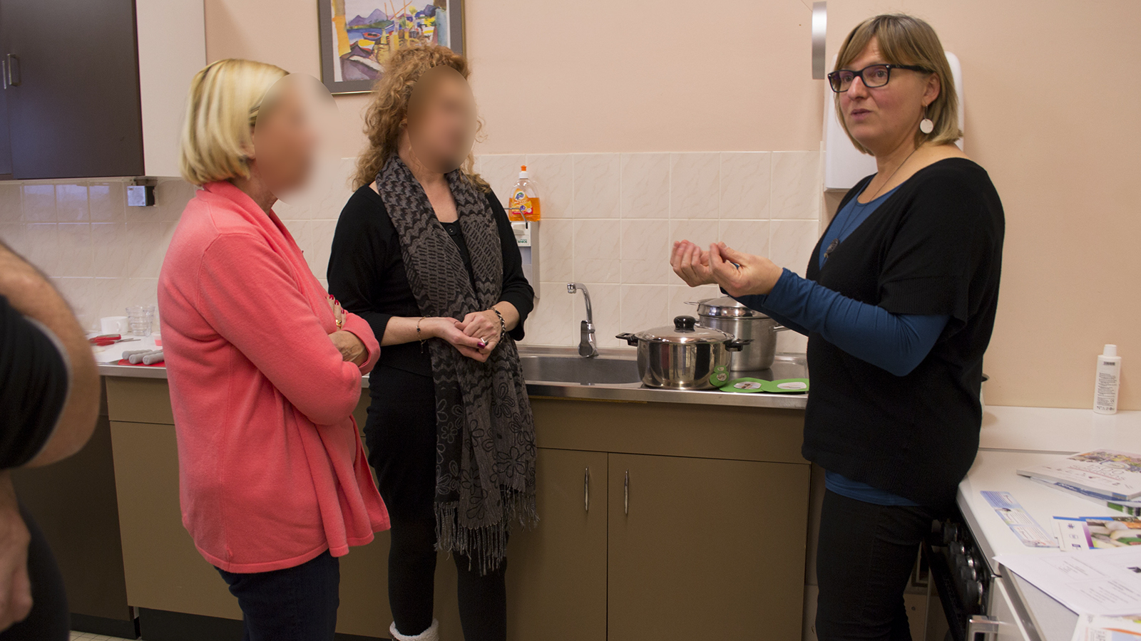 Le service de Mme Sordet a la particularité de développer l’éducation thérapeutique. Étant donné que le patient aura besoin de soins quotidiens, il est important de lui apprendre à être autonome. Des ateliers collectifs qui traitent de ces questions sont organisés deux fois par mois. Au cours d’une grande journée les patients présents sont invités à participer diverses activités ayant pour objectif de tester leurs connaissances sur leur maladie mais aussi de les enrichir et de découvrir les outils et les gestes qui peuvent les soulager au quotidien. Au programme de cette journée, rencontre avec un podologue, un kiné, un ergothérapeute, un infirmier et un pharmacien, qui apporte chacun leurs outils de médiation.