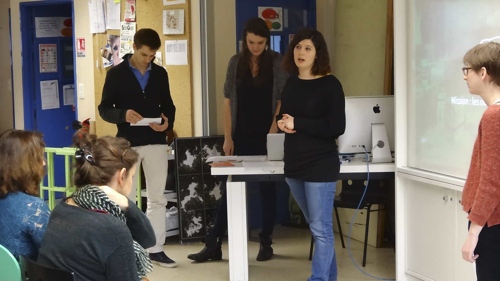 Vendredi 23 janvier, nous rendons compte de nos observations et pistes de projet devant l’ensemble de la classe, la Fabrique de l’Hospitalité et l’équipe pédagogique.