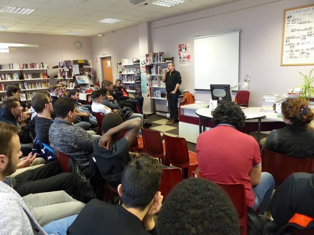 Les C2IS2, les 1ères PIBM et 1ères PBEE ont, quant à eux, rencontré Xavier-Laurent Petit, auteur de « Maestro », « Fils de guerre », ou encore « L’oasis ». Ses livres les ont touchés parce qu’ils traitent plutôt de faits d’actualité. M. Petit a su intéresser ainsi un public souvent très éloigné de la littérature, et certains ont même osé lui avouer écrire régulièrement de petits textes.