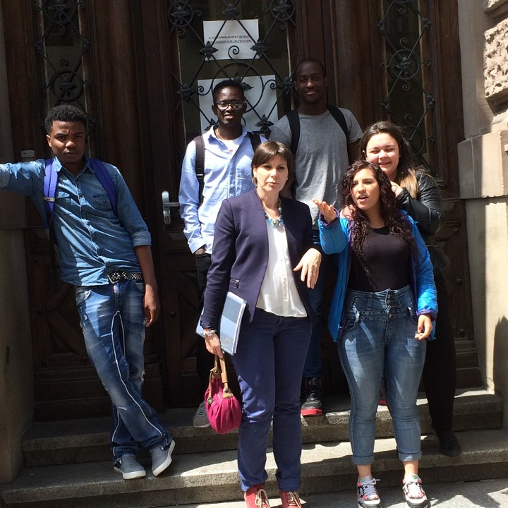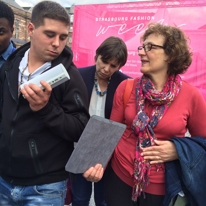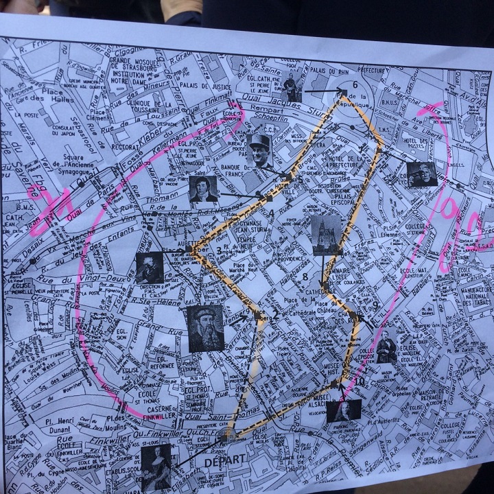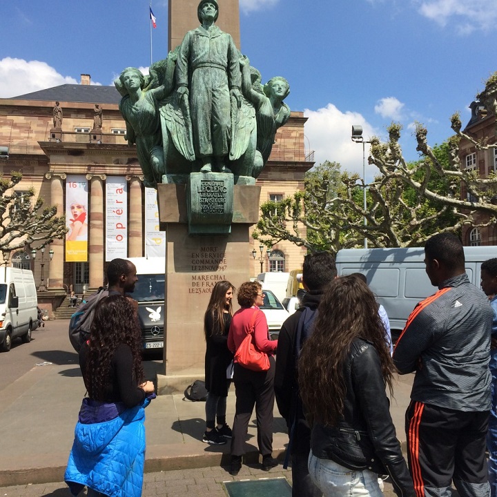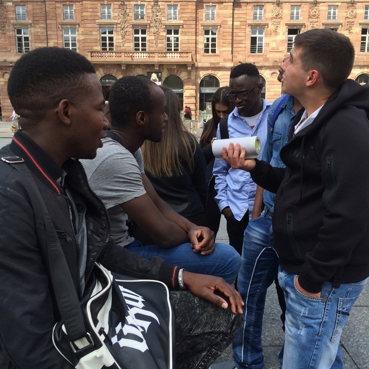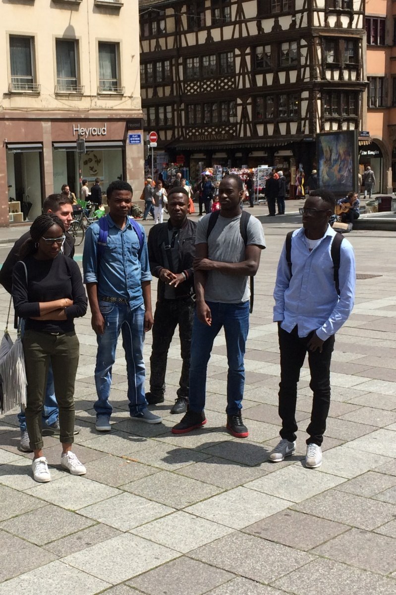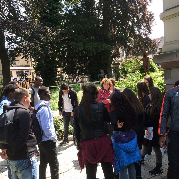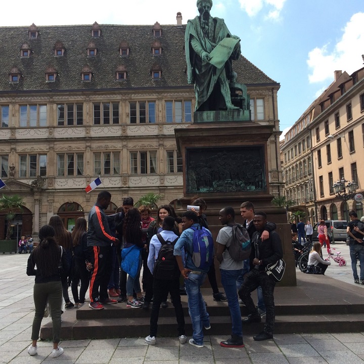C’est ainsi que les élèves du Lycée Cassin ont proposé une visite guidée et commentée des sites remarquables de Strasbourg, à travers l’évocation de personnages emblématiques de la Ville de Strasbourg. Avec l’aide de leurs enseignants, ils ont préparé des textes explicatifs qu’ils ont enregistrés en mp3, et que les élèves du Corbusier ont pu écouter lors de la visite de la ville.