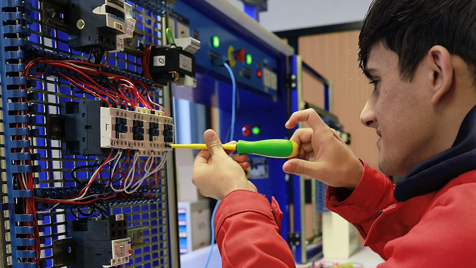 Lors de sa formation, l’élève électricien apprend à intervenir sur les installations électriques et sur les réseaux de communication, en prenant en compte les enjeux de la transition énergétique et l’évolution des techniques et des technologies numériques. Il s’agit d’apprendre à mettre en place les matériels, à raccorder les appareils, à installer des équipements électriques nécessaires au transport, à la distribution et à la transformation de l’électricité ou bien, à mener un diagnostic ou une réparation sur des ouvrages électriques.