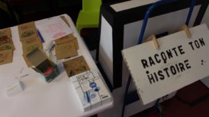 Mais ils n’oublient pas pour autant les histoires de Belin. Leur atelier de pictogrammes que l’habitant choisit pour générer une histoire était aussi présent lors de cette journée. Entre les différents personnages, les émotions et les lieux, nous pouvons lire les aventures incroyable d’un Viking qui a le cœur transpercé par une épée ou celle d’un pompier à la recherche de l’ordinateur de Geoffrey.