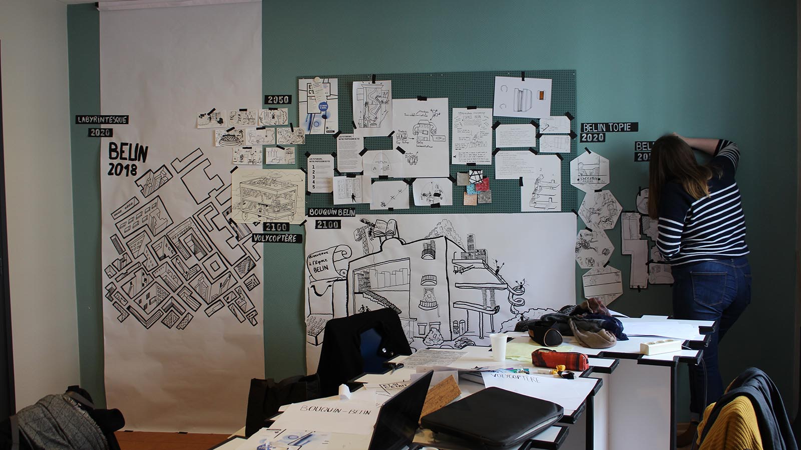 Mardi 27, les futureurs ont fait appel à tous les groupes pour apporter des expressions utopiques de l’espace Belin. Tobbogans, labyrinthes, manèges et tapis roulants, voilà comment les étudiants voient le futur du bâtiment. On peut ainsi voir autant de constat du lieu que les problèmes liés à une évolution futuriste. Comment les résidents du lieux imaginent le futurs de le