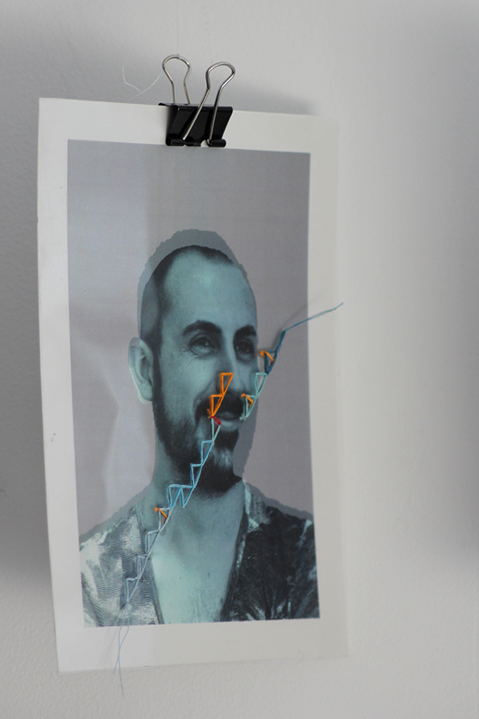 J’ai réalisé un premier test d’atelier qui prévoyait l’intervention des élèves sur des portraits de plein pieds à l’aide de normographes, de papiers découpés et de dessins.