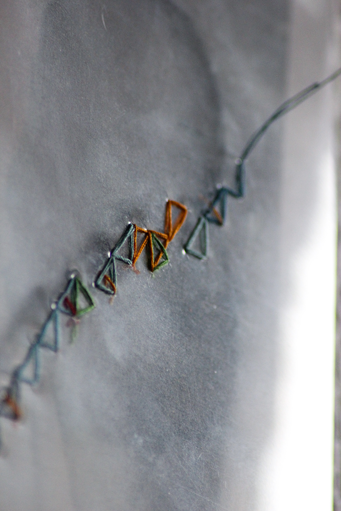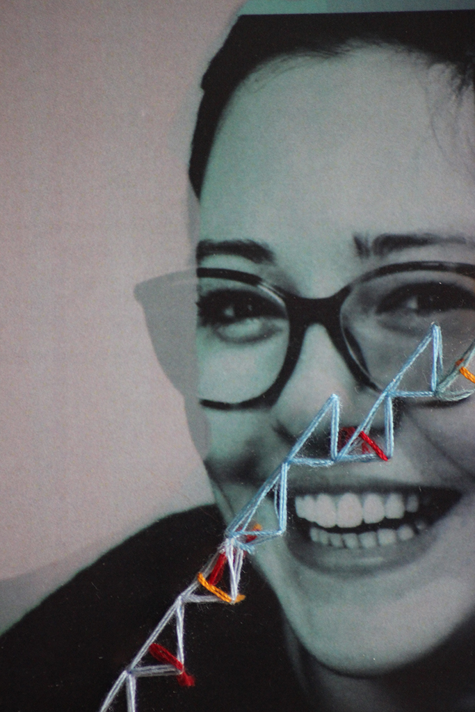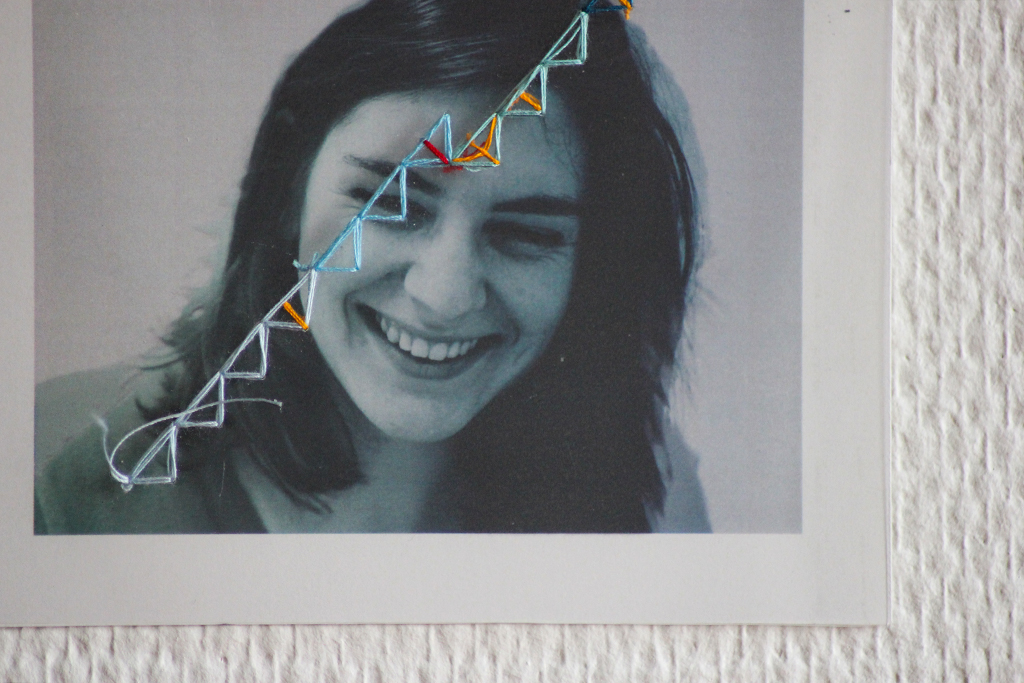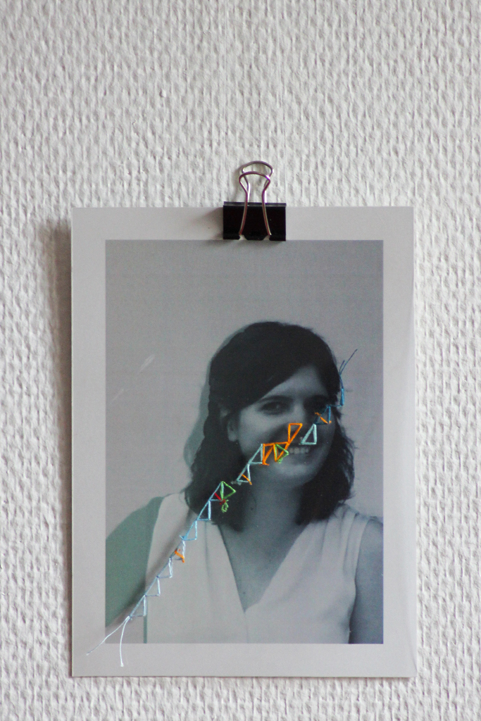 Série de portraits de personnes étudiant dans la même classe. Leurs parcours scolaire, mis en exergues par le fils, commencent tous au même point symbolisant la troisième, et divergent petit à petit avant de se retrouver présentement au sein de la même formation. A travers un protocole de couture (code coloré, la montée en compétences en vertical, la succession des années en horizontal), j’ai recherché à créer différents motifs et traduire la notion de parcours. Dans le poster, je suis allée plus loin en croisant et combinant toutes les données reçues. Des corrélations sont mises à jour, des superpositions et croisements se forment pour créer un métamotif.
