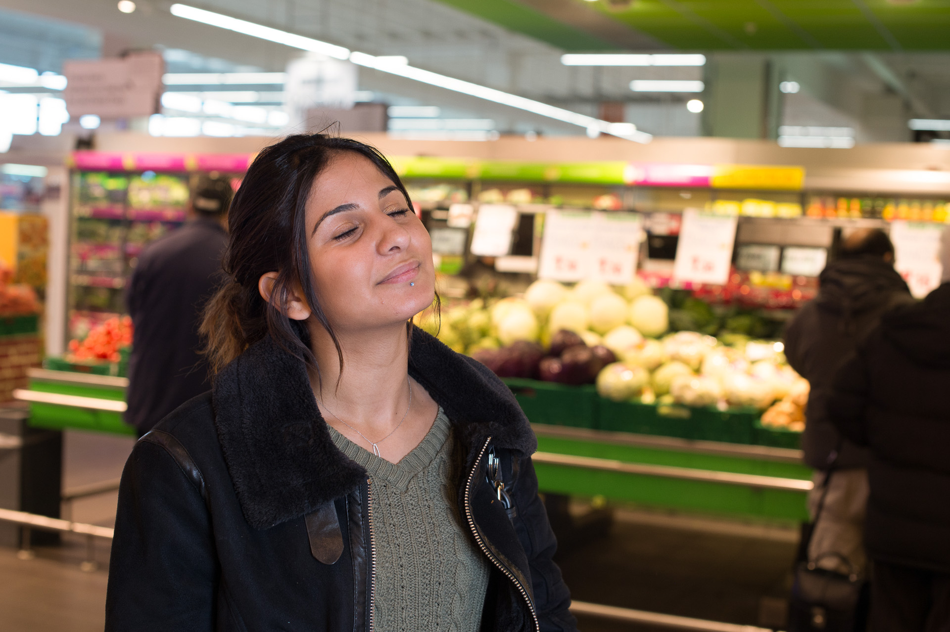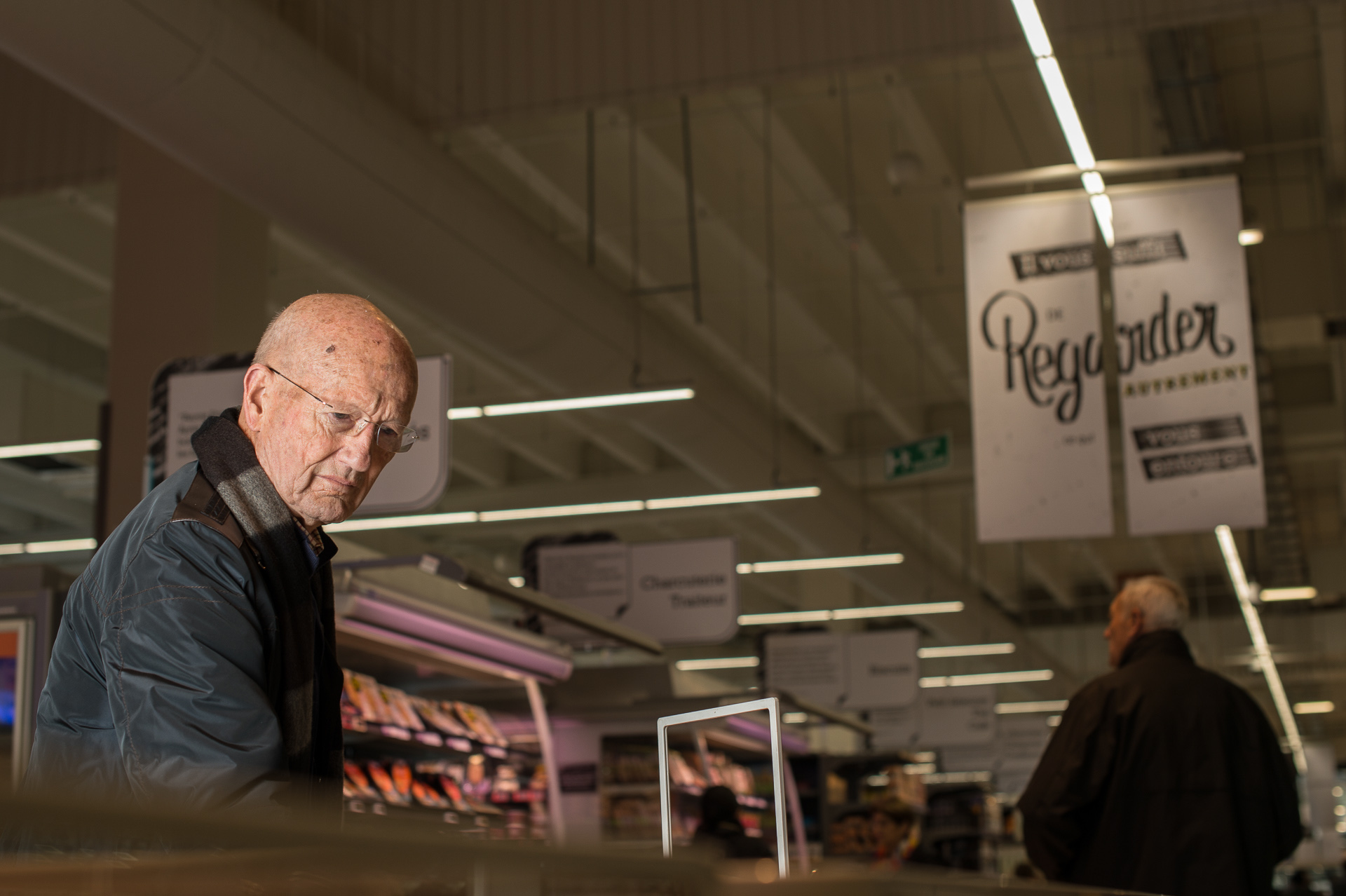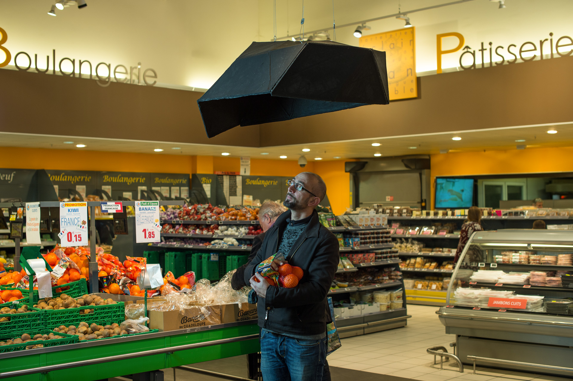 “J’ai d’abord été interpellé par l’histoire racontée au rayon fruits et légumes, et c’est comme ça que j’ai réalisé tout ce qui avait changé dans le magasin, j’ai alors fait tout le tour, et ai testé tous les outils, quelques uns d’entre eux m’ont bien plu, et c’est bien qu’on puisse ramener quelques uns de ces éléments avec nous, les histoires à la place des sachets, je regarderais chez moi puisque je n’ai rien sur moi pour noter la référence.”