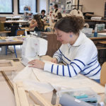 - Juliette en train de coudre la doublure du sac