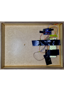 Après quelques heures d’errance intellectuelle, Estelle (professeure d’innovation sociale nous suivant sur le projet) est venue nous aider en proposant une solution : pourquoi ne pas créer un programme faussement aléatoire activé par la platine et indiquant, par nos symboles préalablement choisis, les questions auxquelles répondre. Par le biais d’un programme Arduino allumant, d’après une boucle, 4 LEDs et s’activant quand on tourne le vinyle, il devenait dorénavant possible de lier nos questions à la platine, notamment grâce à nos symboles positionnés à côté d’une LED, à chaque LED son symbole. Cet aléatoire codé permettait de conserver l’aspect ludique tout en liant nos différents éléments. Restait maintenant à penser le support de récolte des informations collectées.