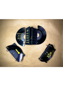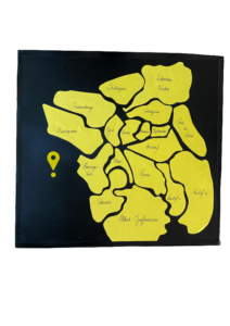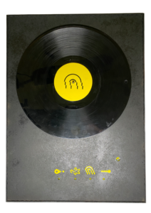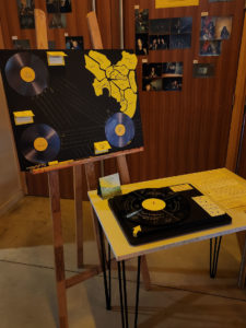 Une fois les retours analysés et intégrés à notre raisonnement, nous nous sommes lancé.e.s sur la conception de la seconde version de notre dispositif. Il nous fallait absolument conserver la platine vinyle et son interactivité qui avait attiré les participant.e.s lors de la V1. Seulement, se posait à nous le problème suivant : comment lier les questions auxquelles les participant.e.s devaient répondre à cette platine ludique ? Et aussi, comment s’assurer de leur réponse aux quatre questions ? De plus, il nous fallait repenser l’organisation de la carte et des partitions pour une meilleure lisibilité de notre dispositif.