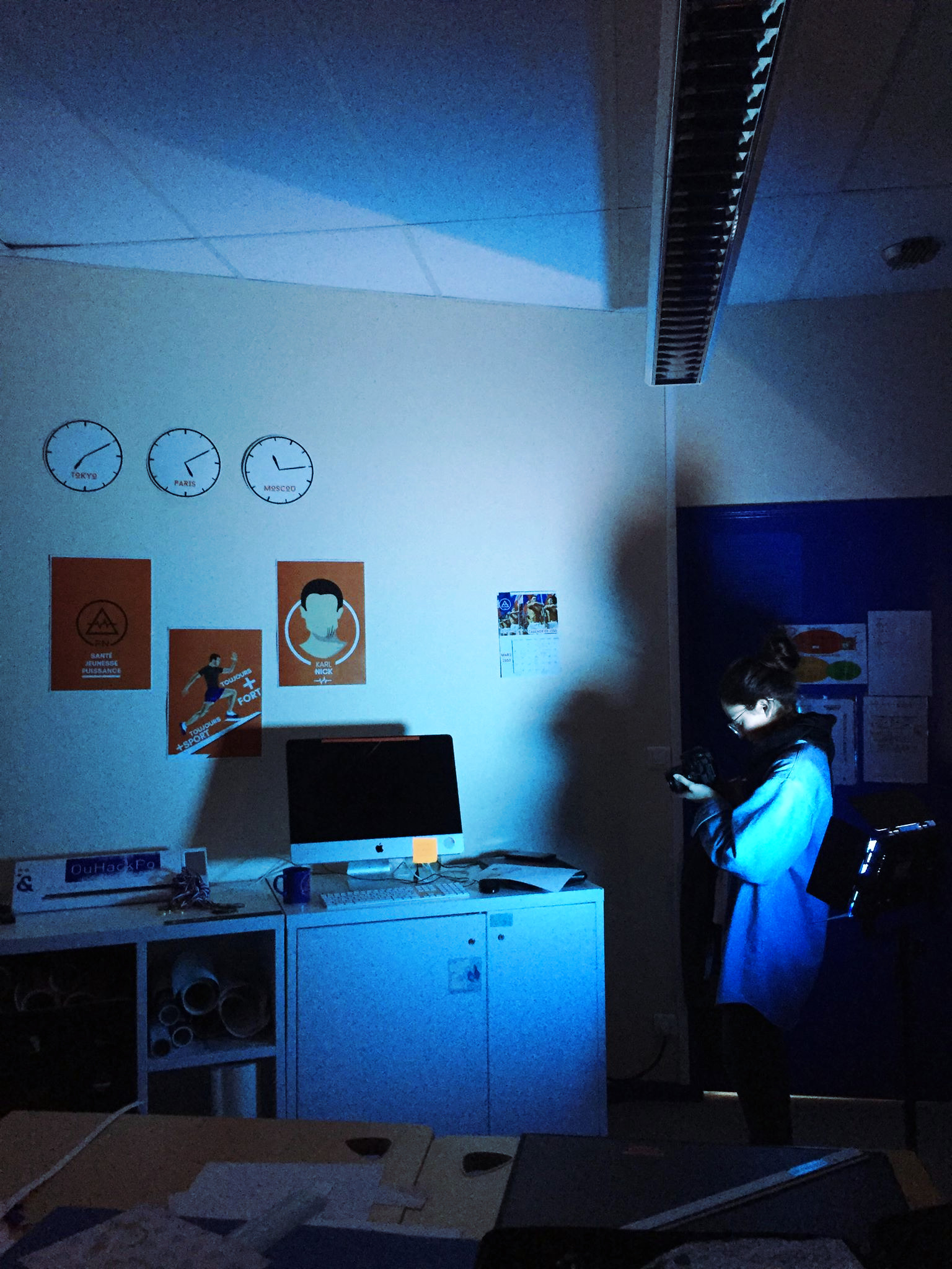 L’ambiance de la salle, elle, était tamisée d’une lumière bleue grâce à des filtres que nous avons mis sur des projecteurs.
