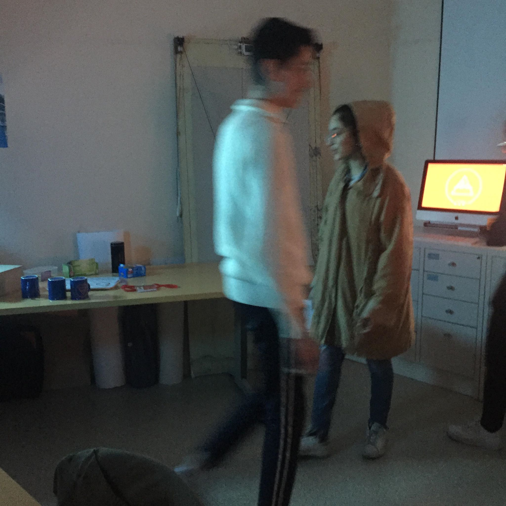 Pour la première partie, nous étions divisés en deux groupes, l’un composé de Salsabil, Léa et Thomas, et l’autre de Melvin et Mathilde. Notre objectif était d’écrire un scénario autour de la dictature du sport, s’adaptant à un escape game.