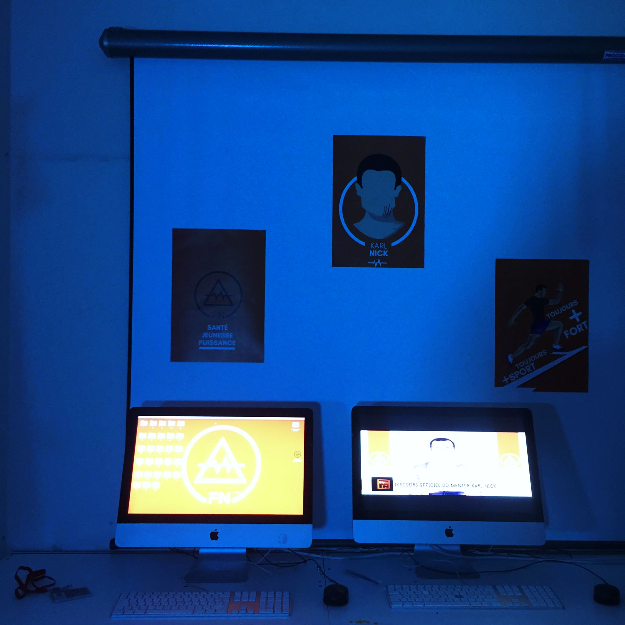 - Un ordinateur (celui à proximité de l’écran où est diffusé le discours du dictateur)