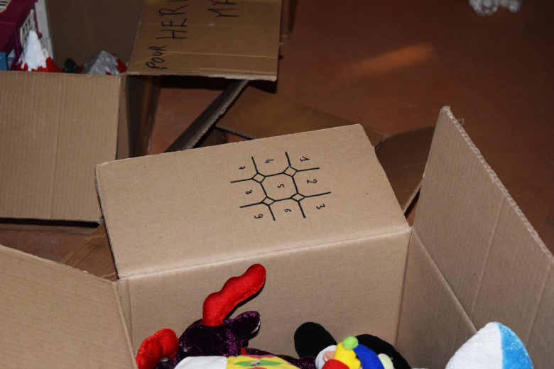 Nous avons récupéré plus de cartons et de jouets: cela nous a permis d’être plus facilement immergés dans la pièce. Les cartons avec cadenas ont été consolidés avec des morceaux de bois. Le digicode s’accompagne d’un mode d’emploi. L’énigme avec les Legos a aussi été simplifiée. De plus, la liste donnée aux joueurs a été précisée.