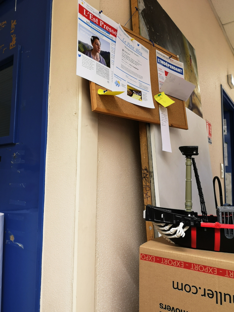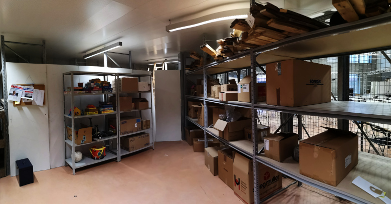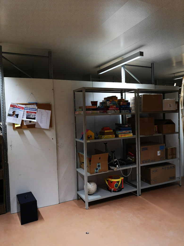 Pour la réalisation de notre escape game, nous avons choisi de nous installer dans la réserve d’un atelier. Disposant déjà de grandes étagères, nous avons rangé et nettoyé cet espace. À l’aide de plateaux servant de table, nous avons cloisonné certains endroits afin de créer notre propre espace.