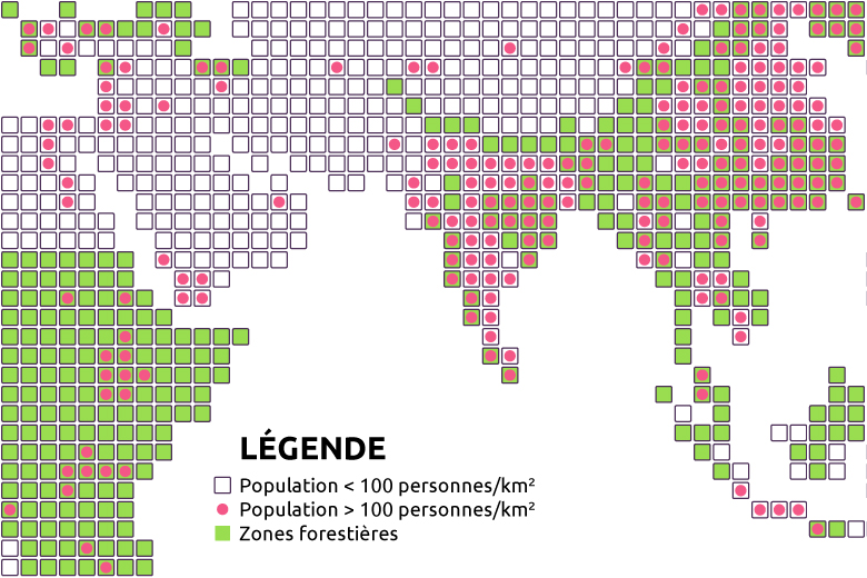 Cette cartographie forestière et démographique du monde à pour but de comprendre comment l’Homme cohabite avec la forêt.