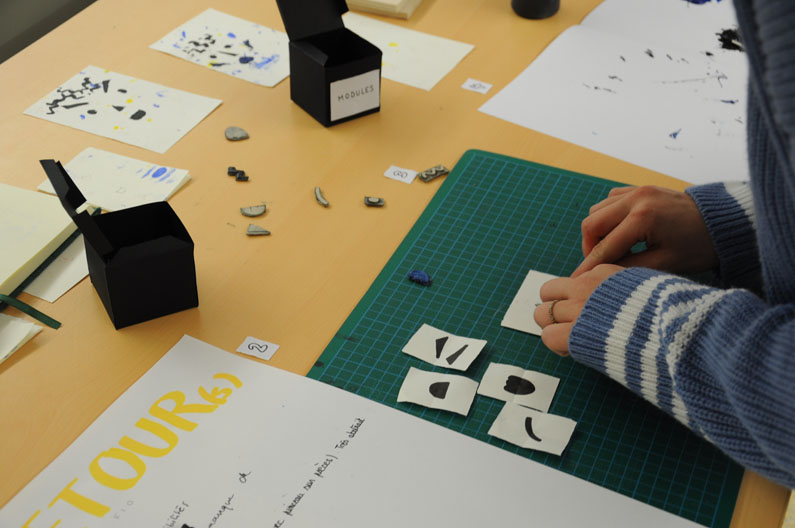 Lors d’un court atelier, les kits sont installés, et disposés de la manière la plus compréhensible possible afin d’être éprouvés par les autres. Cela permet de vérifier ce qui est compris lors de la lecture du protocole et ce qui doit être amélioré.