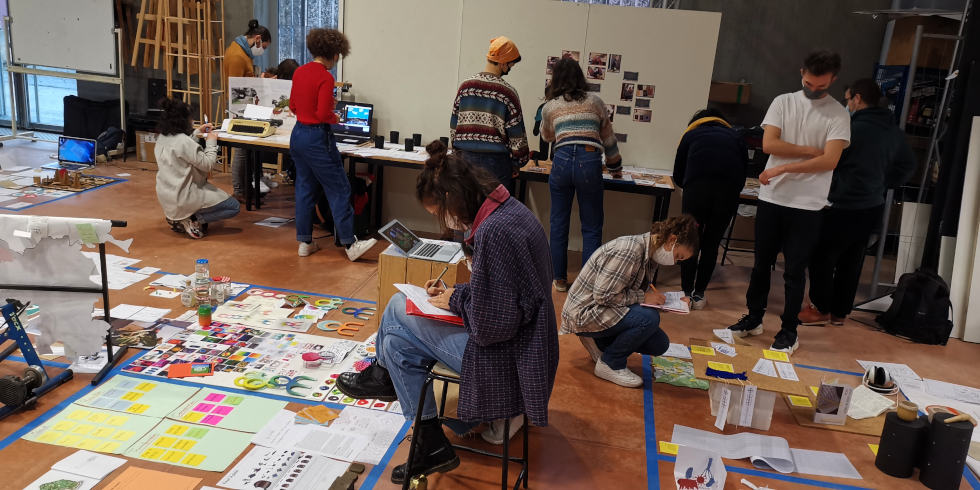 Le mardi 15 décembre 2020, les étudiants de DNMADe IS et ceux de DSAA2 présentent leurs recherches. Outils et prémices de projets sont “étalés” au Grand Atelier. Les échanges croisent, augmentent, enrichissent, provoquent des rencontres, voire redirigent les idées, intentions, pistes engagées. Un moment d’échanges qui engage sans nul doute de fructueuses collaborations entre étudiants de ces 2 formations.