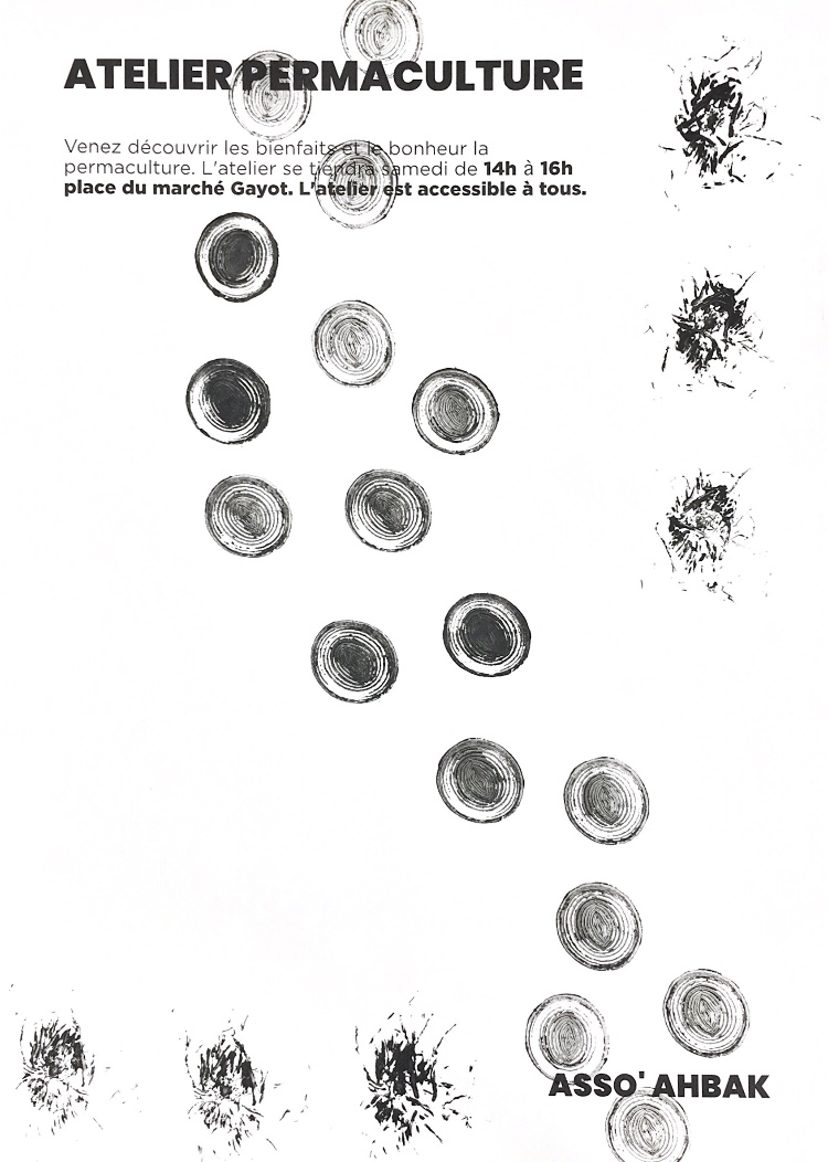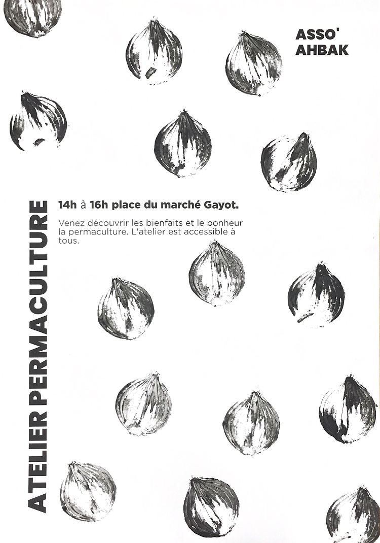L’association qui m’a été attribuée est celle de l’AHBAK, association du quartier de la Krutenau qui s’occupe du compostage et de la permaculture de ce quartier. Afin de répondre à la demande, je propose un kit virtuel dans lequel les membres de l’association pourront réaliser leurs affiches de façon autonome !