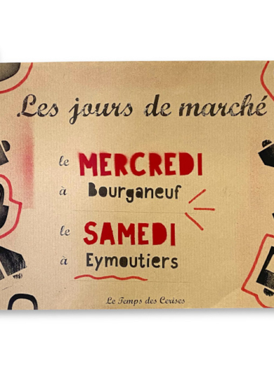 Ce kit permet la création d’affiches selon un protocole établi pour une épicerie itinérante existante. Le projet reste fictif mais se construit autour d’un contexte concret. Ici, ce kit est destiné à l’épicerie itinérante bio et rurale Le Temps des Cerises. Le kit reprend les codes de la charte graphique déjà existante et propose tout le matériel nécessaire à la réalisation de trois affiches différentes, mais permettant également l’appropriation du protocole par l’utilisateur.