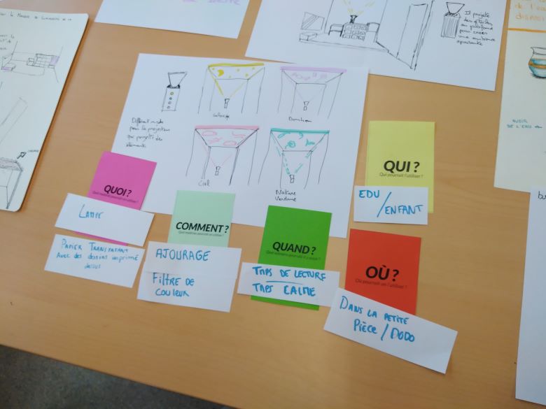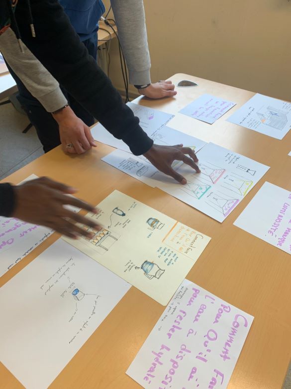 Nous avons entamé la création de prototypes, en commençant par dessiner des plans de nos idées, noter des fonctionnements que nous voulions utiliser et quelle matière allait composer nos objets.