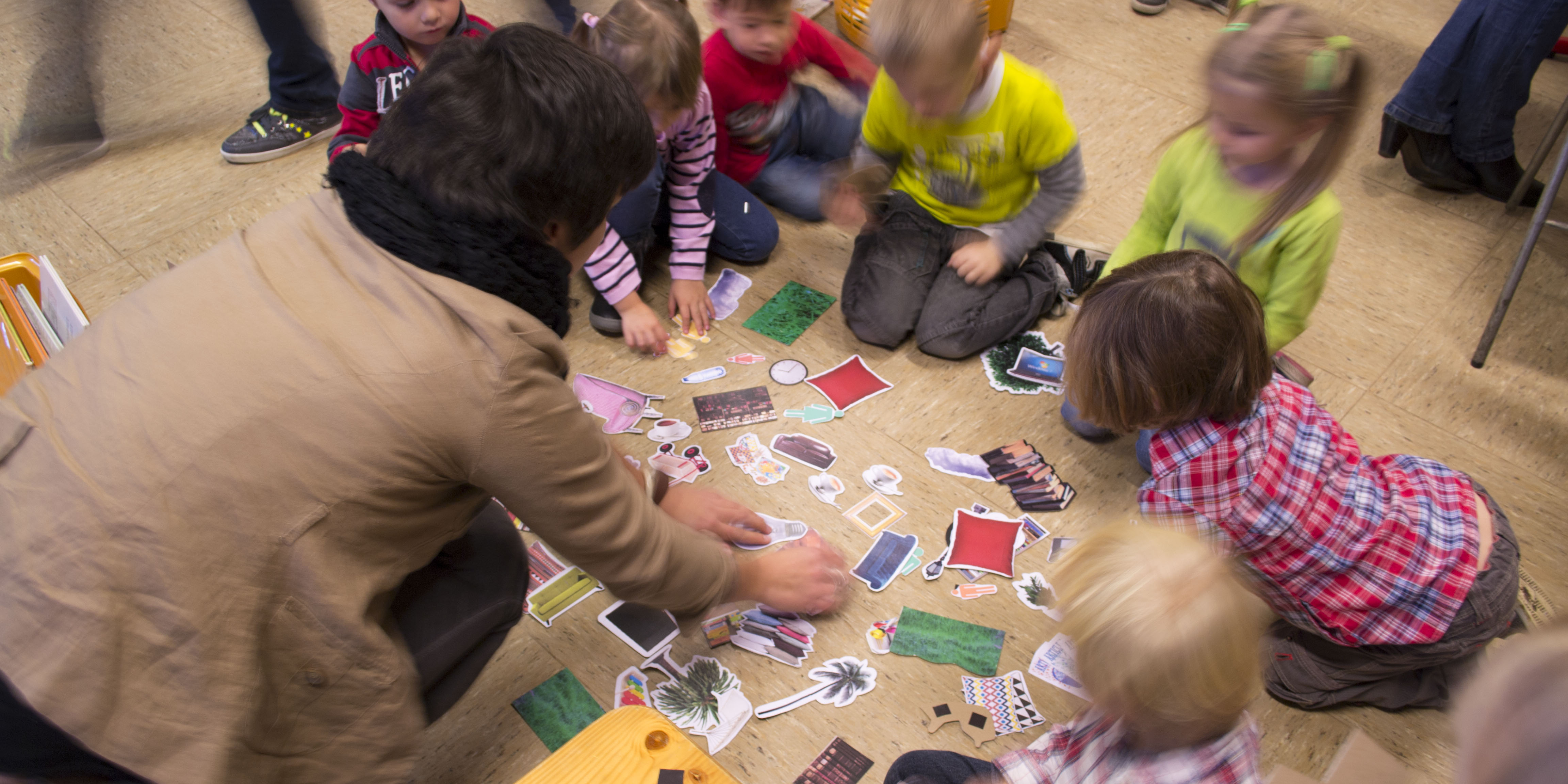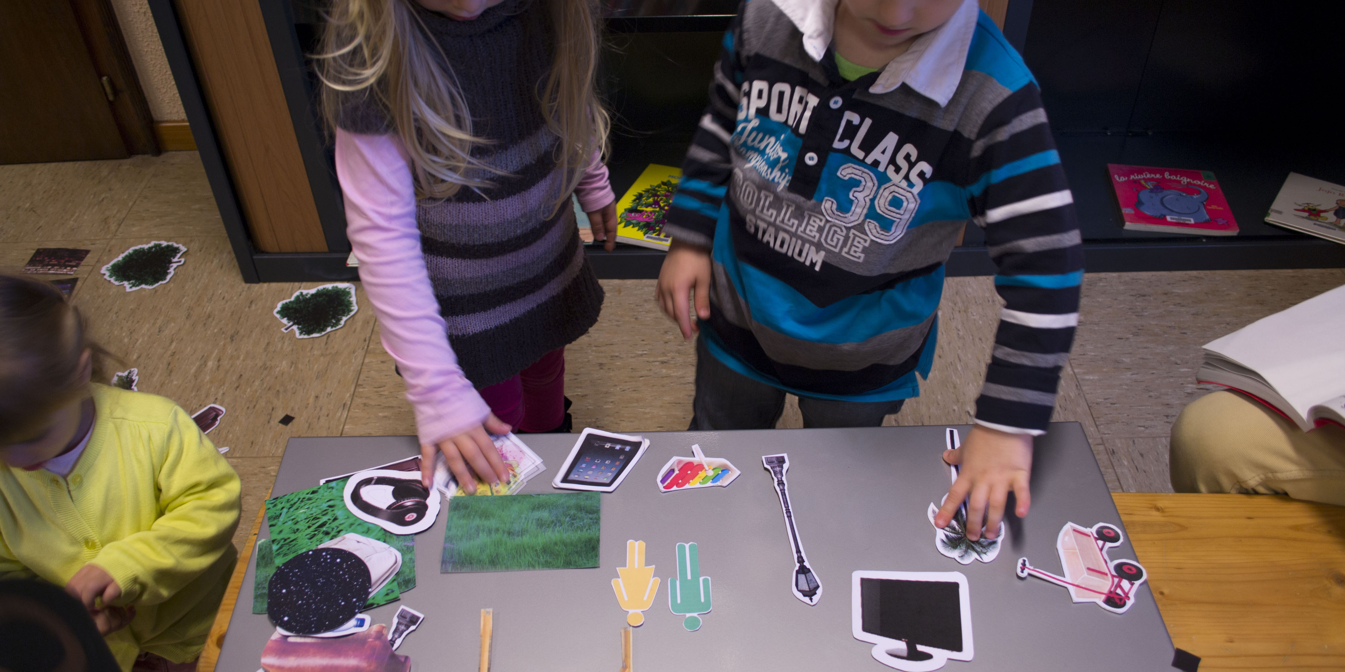 Aujourd’hui CLAP se met en danger en rencontrant une féroce classe de …. maternelle! Nous avions préparé un outil pour les faire parler … qui les a beaucoup fait jouer. Nous avons collecté des informations précieuses, par exemple la différence d’accès au numérique qui peut exister entre les élèves. Certaines images ont eut beaucoup de succès comme la camionnette ou les arbres mais cet outil nous a surtout permis d’avoir un contact plus facile avec les enfants et de comprendre les notions avec lesquelles ils étaient à l’aise ou non : certains connaissaient la tablette, l’utilisent fréquemment à la maison, d’autres n’ont pas d’ordinateurs. Enfin, pour canaliser toute cette énergie dans ce petit espace, les maîtresses séparent le groupe en deux et mènent des activités différentes dans des salles adjacentes. Pour compléter ce que nous avions vu, nous avons profité de la sortie des classes pour aller rencontrer les mamans, mamies et nounous qui viennent chercher leurs enfants et petites enfants à l’école.