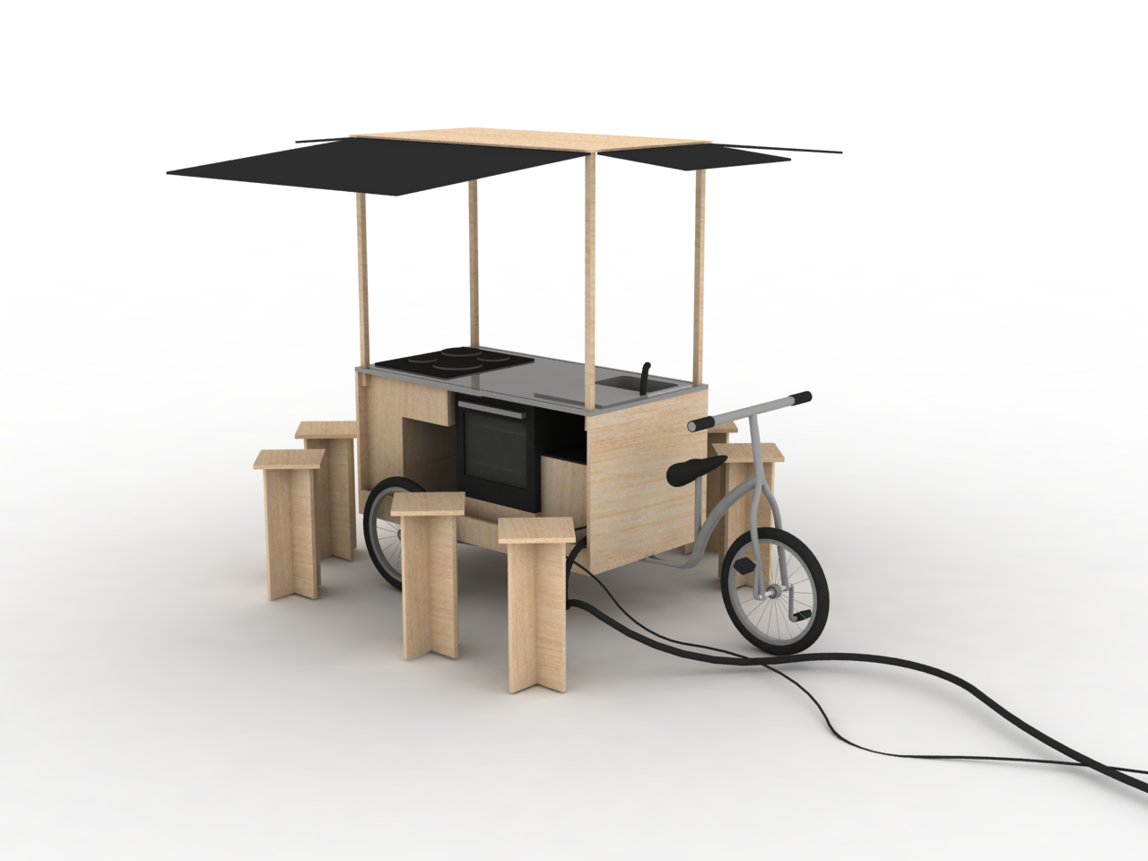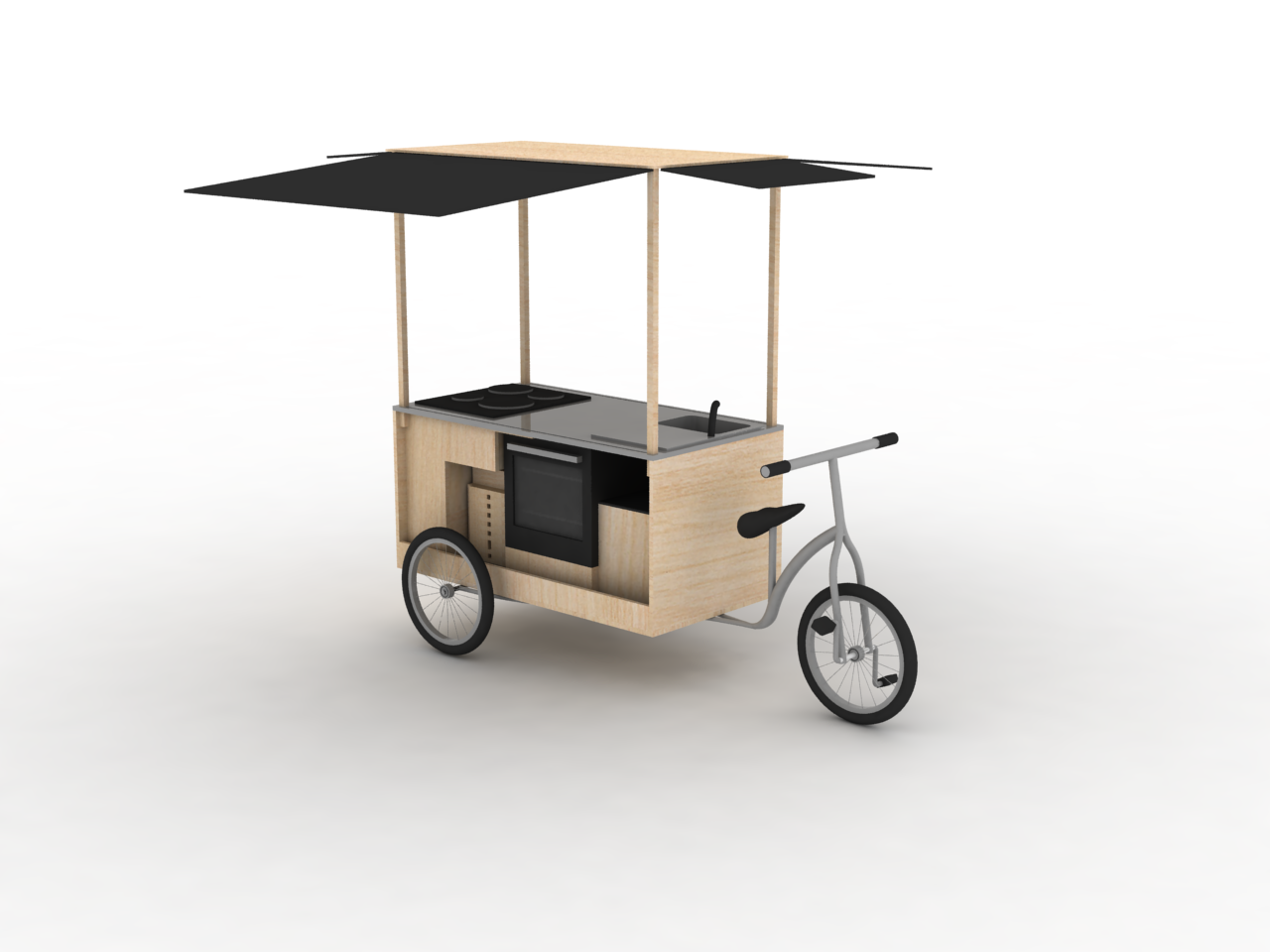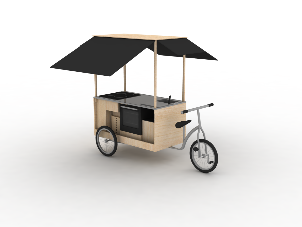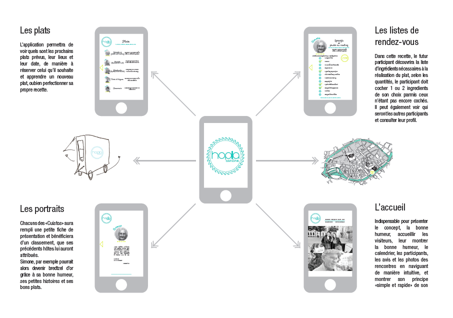 Ayant constaté lors de notre précédente analyse qu’il n’était pas nécessaire d’introduire d’avantage de numérique dans notre quartier mais que cependant il nous faut donner l’opportunité aux alsaciens de se réapproprier le centre ville, d’y introduire un événement convivial. Nous avons donc décidé de développer une application que nous avons nommé « Hop’la cantine » Cette application est le portail par lequel nos amis Strasbourgeois peuvent proposer de devenir le chef d’un jour, ils n’ont qu’a choisir une recette énoncer le nombre d’ingrédients nécessaires et tout à chacun peut s’inscrire à cette leçon de cuisine convivial en apportant un ou plusieurs ingrédients nécessaire à la préparation du plat. Cette application fonctionne de paire avec une cuisine mobile, le chef d’un jour peut donc choisir le lieu ou il souhaite cuisiner et partager. Nous avons effectué nos recherches sous forme de maquettes et de modélisations pour créer notre petite carriole culinaire. Notre objectif étant de rendre notre dispositif facilement déplaçable à vélo, Strasbourg étant une ville ou le vélo est un moyen de transport fortement utilisé. De plus elle se devait de contenir tous les outils nécessaires à la préparation d’un repas (four, plaques, point d’eau…etc). Nous avons également commencé à réfléchir à la communication autour de ces deux éléments (l’application et la cuisine mobile) en nous inspirant d’éléments graphiques propres à la culture locale. Afin d’étoffer l’identité de notre projet nous allons également nous rendre au musée Alsacien au cour des jours suivants.