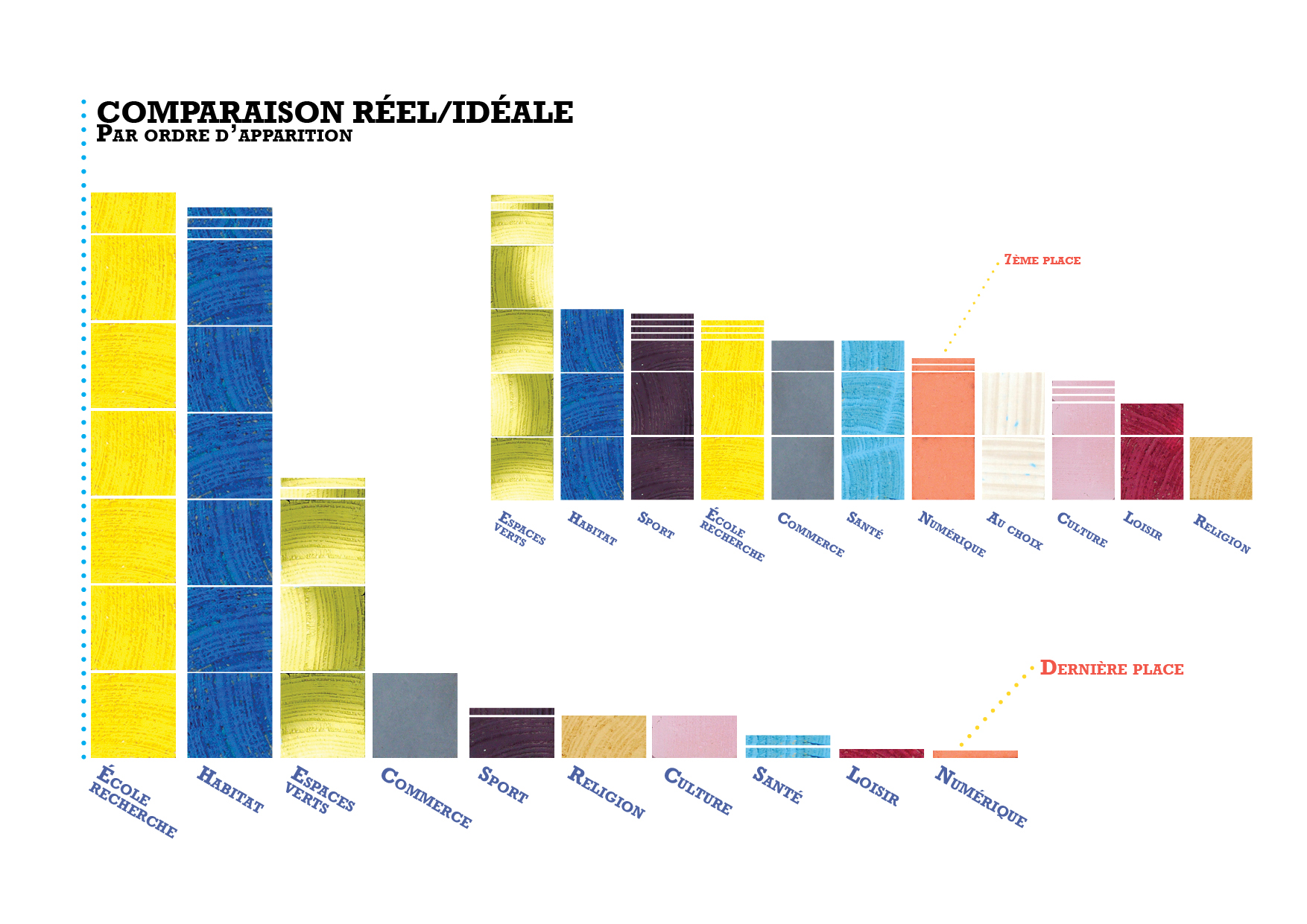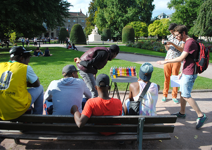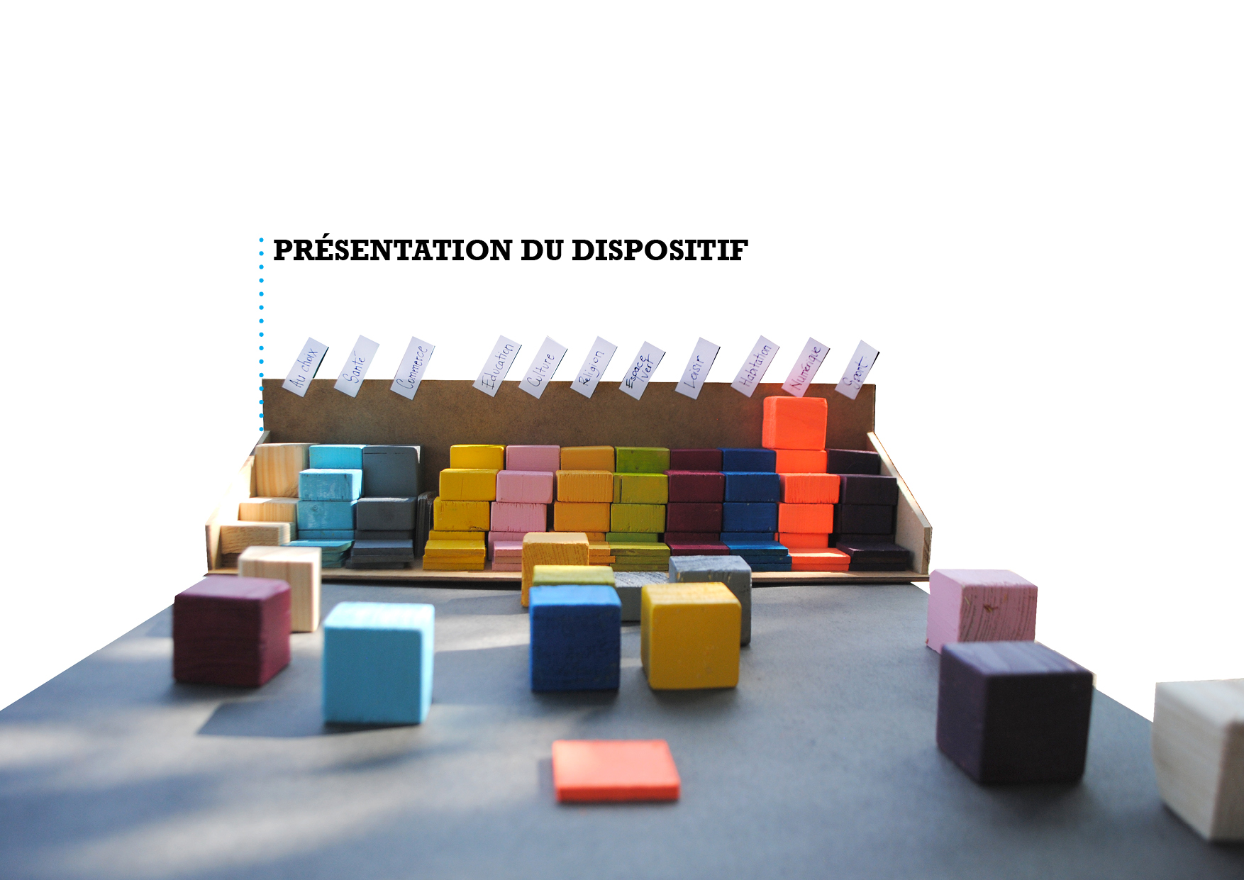 Dans l’idée de rencontrer les usagers et pour tenter de tirer des pistes de développement nous décidons de produire un outil simple et accessible. Celui ci amènera la personne à construire sa ville idéale à travers des thématiques fortes (santé, commerce, éducation, culture, religion, espace vert, loisir, habitation, numérique, sport). Cette vision globale sera plus facile à proposer a l’usager.