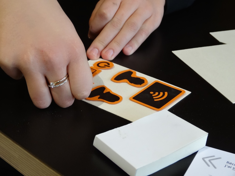 Après avoir exprimés des situations d’espace public, les deux jeunes m’observent à réaliser la seconde étape, qui est de remplir ma nouvelle carte personnelle. Pour briser le frein de la “page blanche”, je réalise l’exercice à parti d’un des constats. je l’a nomme la carte “tous pour un”. “À votre tour”, dis-je et ils se précipitent sur les éléments disposés sur la table.