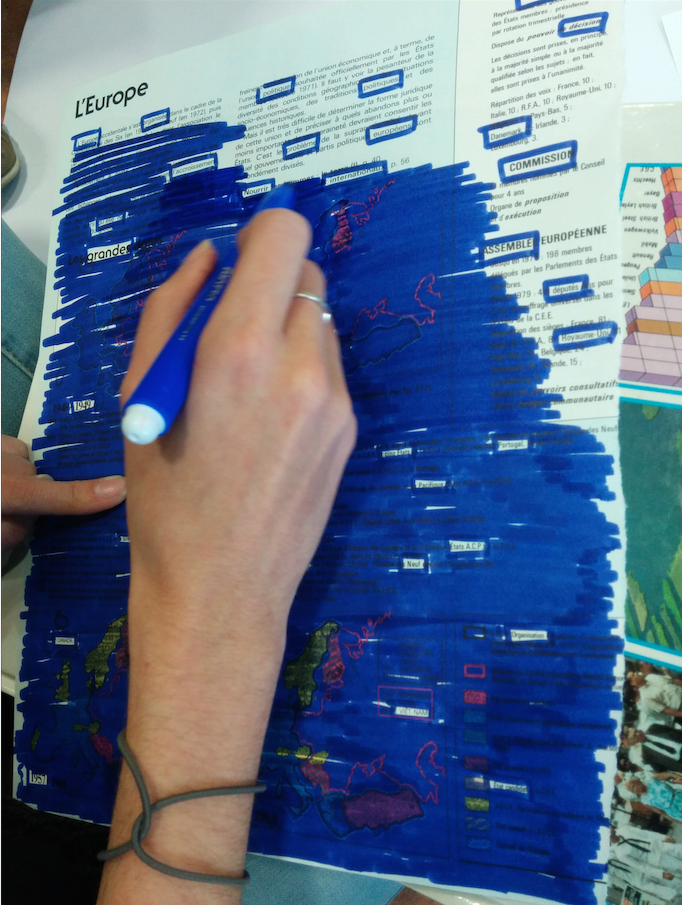 Cette performance peut exister dans le temps exclusif du groupe (l’atelier, le studio) ou se dérouler à vue (la vitrine, la galerie, le dehors).