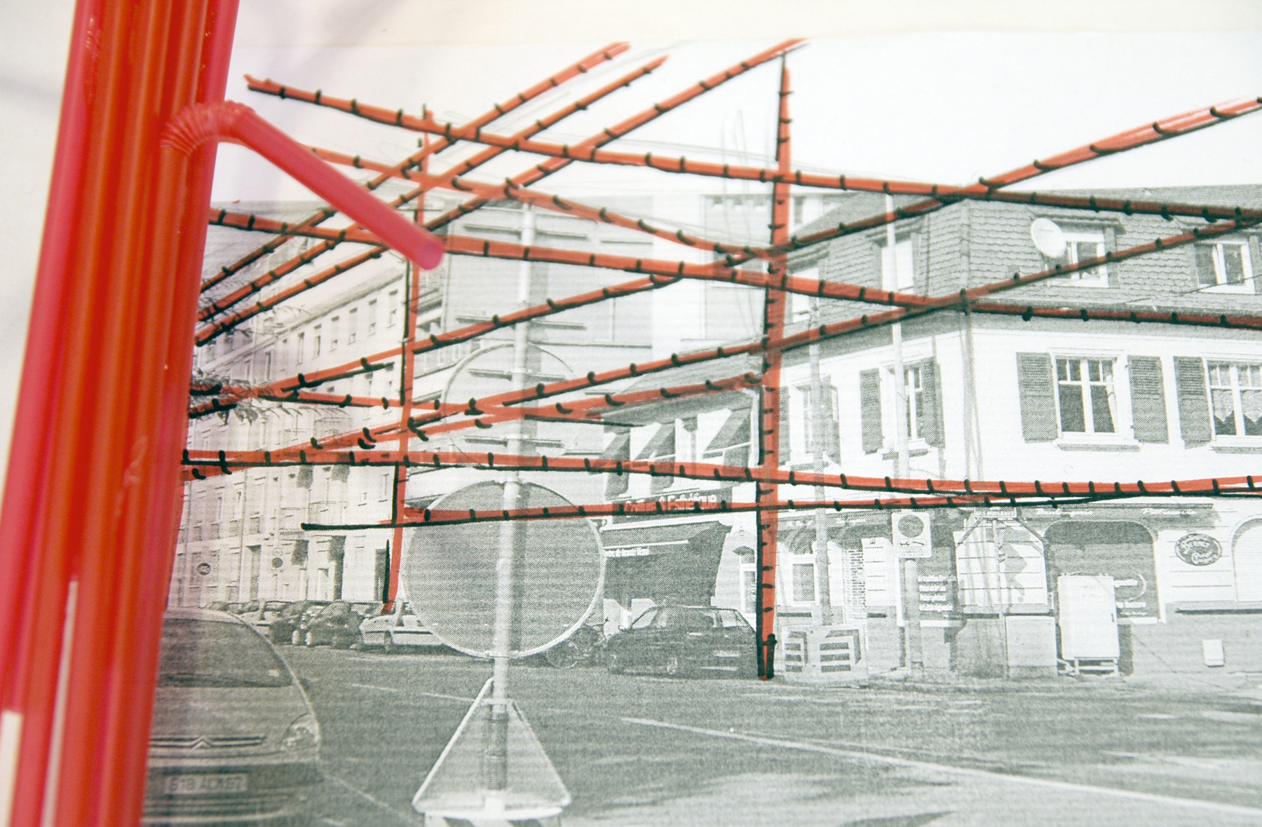 Nous sommes en recherche. Nous sommes dans le temps du projet. Dans la recherche de la ville, c’est-à-dire des relations que nous pouvons induire ou provoquer. Nous travaillons dans la rencontre de Strasbourg et de ses alentours. Du rouge de ses rues, de son blason blanc barré d’une grande bande rouge oblique ; une sorte d’interdiction anachronique. Nous recherchons à côté de ces interdictions. À côté du sens interdit pour ajouter des couches de possibles. Nous sommes en recherche de relations, de soi au groupe, du groupe à la ville, de soi à la ville, des usagers à leur espace, à ses services, des institutions à l’environnement sur lequel elles peuvent agir.