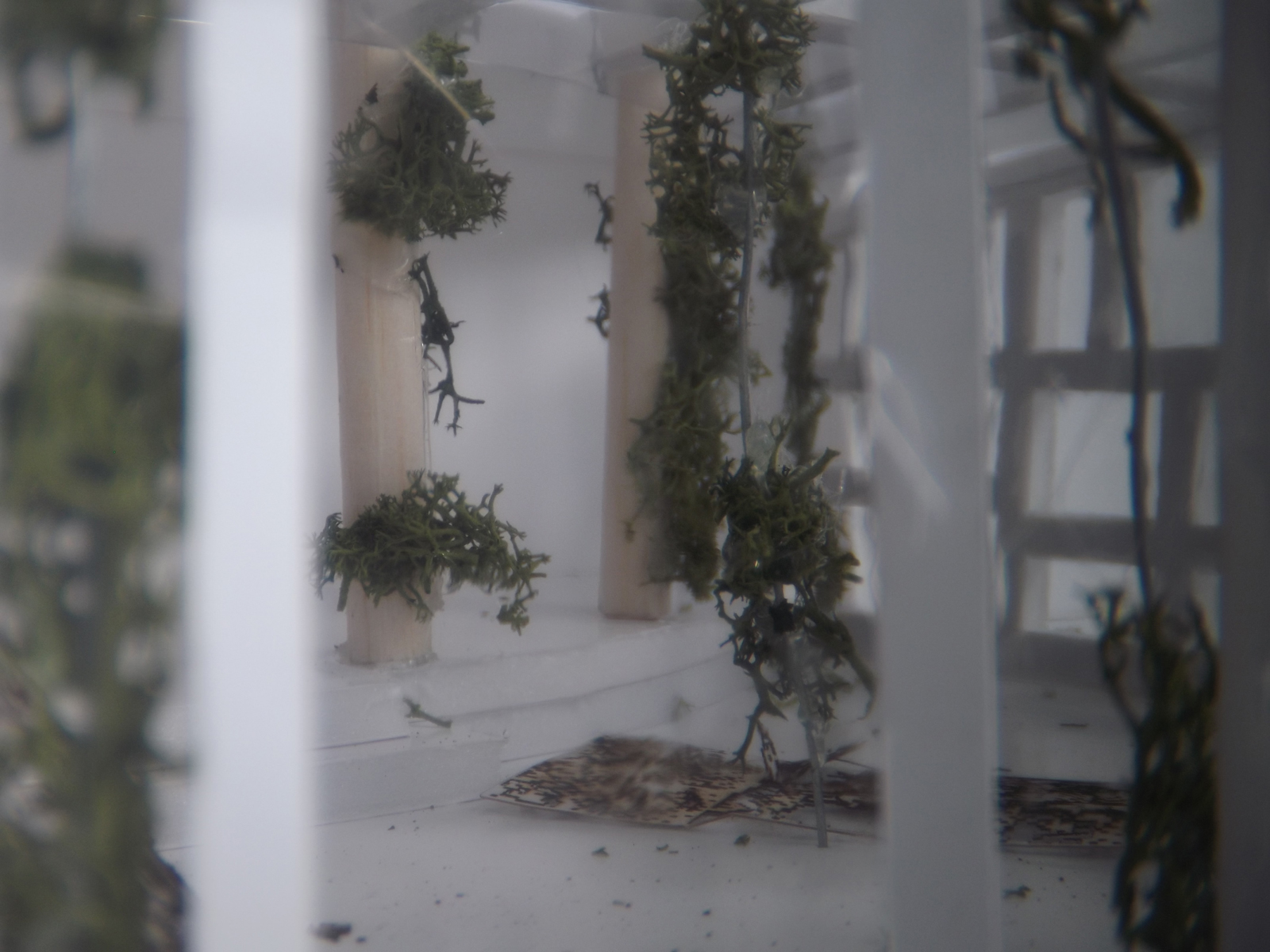 Les soins palliatifs de l’HUS sont confinés dans un service où l’espace est restreint. De plus il manque un espace de recueillement. Notre projet est la création d’un espace annexe qui vient se greffer au service existant et l’amplifie. L’annexe est un espace modulable, à la fois spirituel (il permet de se recueillir) mais qui faciliterait également les rencontres entre les familles et le personnel soignant. Nous travaillons tout d’abord sur l’apport de lumières naturelles. Cet apport se fait par l’utilisation de matériaux translucides et transparents. Des panneaux aérés de motifs, fixés à des rails permettent de créer des sous-espaces. Par juxtaposition et superposition, des jeux d’ombres et de lumières investissent les lieux.