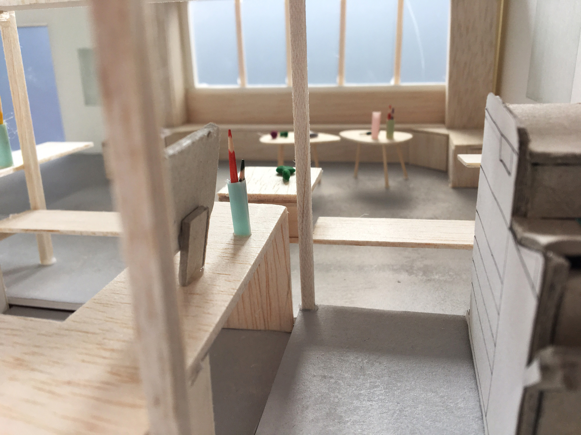 Lorsque l’on rend visite à un proche à l’hôpital, on doit bien souvent se cantonner au chevet de son lit ou bien à la machine à café au bout du couloir. Les espaces communs sont presque inexistants. Cette problématique renvoie donc à la conception d’un espace commun, qui permettrait de se retrouver avec ses proches autour de diverses activités tout en conservant des zones d’intimité par la modulation et la lumière.
