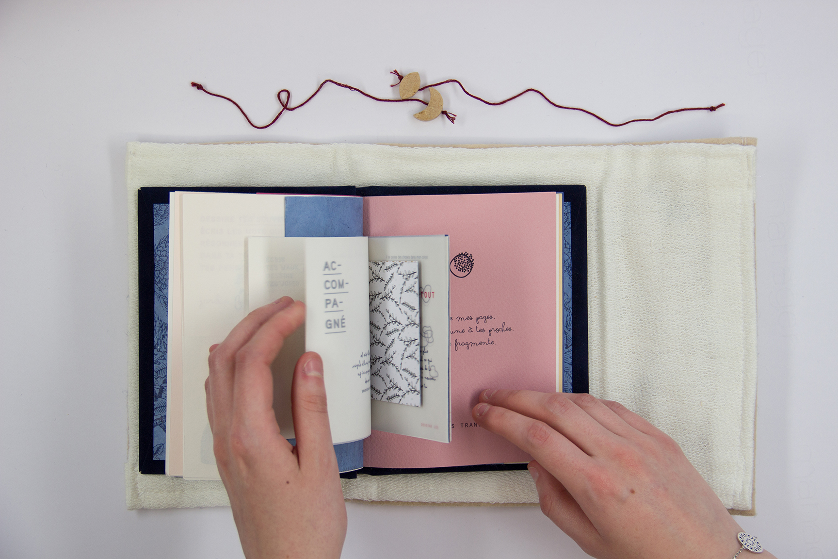 Le confident – Pour les enfants, en posture de deuil, nous avons pensé à un livret à l’allure poétique. Il s’apparente à un doudou, un journal intime, que l’on garde avec soi et que l’on peut transporter partout. Il a pour vocation de rassurer, de consoler, tout en permettant à l’enfant d’exprimer ses émotions.