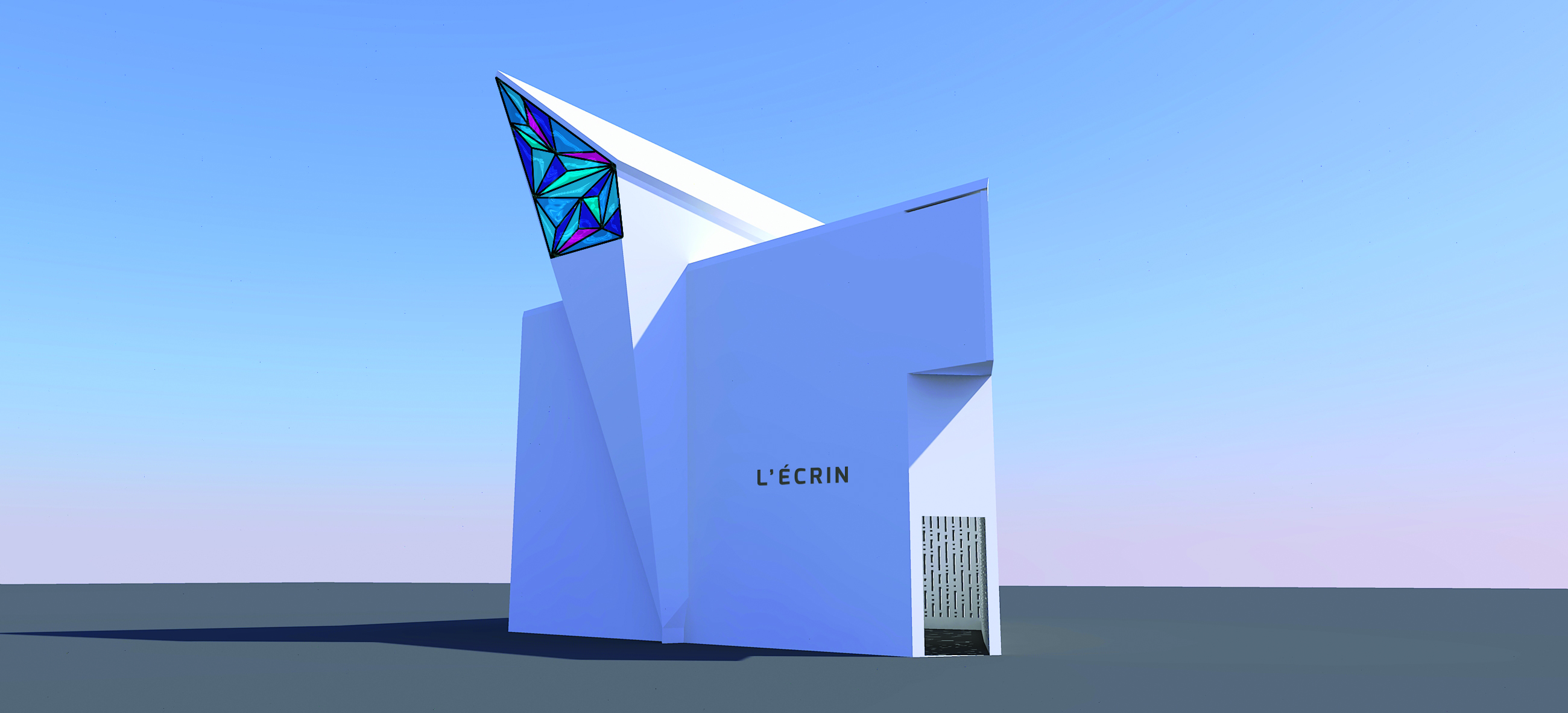 L’Écrin est un nouveau type de chambre mortuaire. Il est composé d’un emboîtement de deux prismes. L’Écrin, la Perle, l’Alcôve, cet emboitement successif vient créer progressivement, une intimité aux proches.