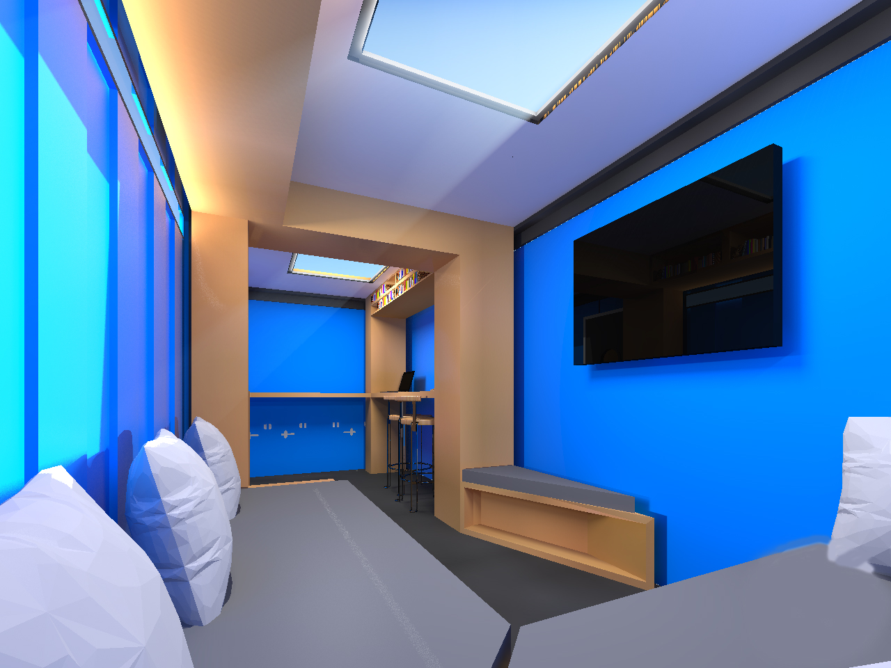 Comme à la maison est une recherche autour du salon des familles pour permettre aux accompagnants et aux patients de se couper momentanément de l’univers hospitalier.