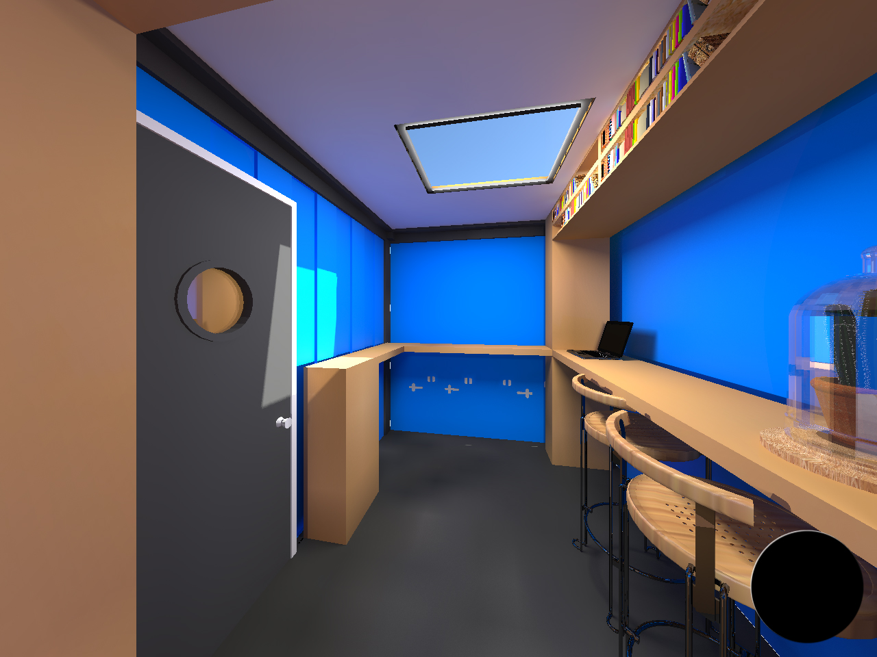 Je cherche à proposer une chambre mortuaire / funéraire comme point de départ pour le parcours vers le deuil laïque. Les rites religieux étant un facteur d’acceptation de la mort, je tends à imaginer comment proposer un processus de rites civils pour accompagner le défunt athée. Nous explorerons le symbolisme formel du cercle à travers les matières, textures et lumières de cet espace étrange.