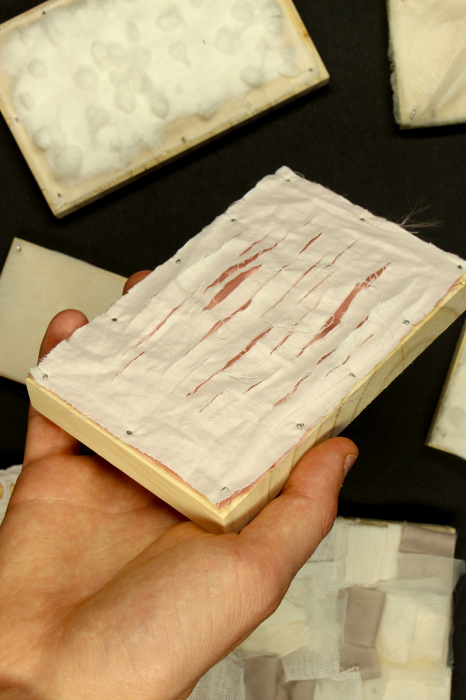 Selon les lumières et les matières, les couleurs ont un impact sensible fort sur nos perceptions et nos comportements. Je souhaite créer des ambiances à partir d’associations couleurs-matières afin de scénographier le premier contact au mort pour les accompagnants, que ce soit dans une chambre mortuaire ou standard.