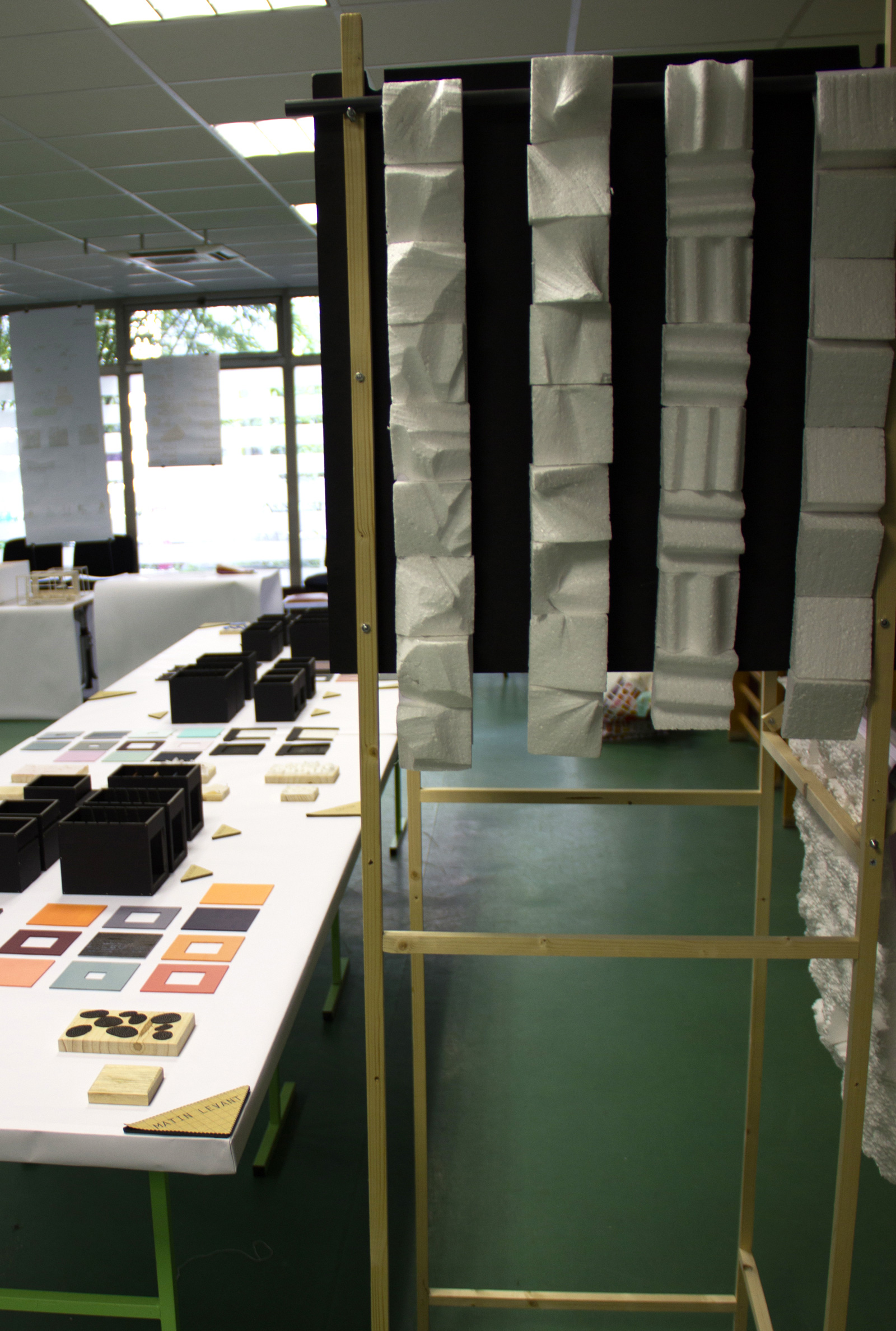 La morgue est un endroit extrêmement mal isolé phonétiquement réduisant ainsi considérablement l’intimité de plusieurs familles qui rendent visite en même temps à leurs défunts. L’idée est d’améliorer leurs conditions à l’aide d’éléments de mobiliers assez simples et sculpturaux, absorbant les vibrations.