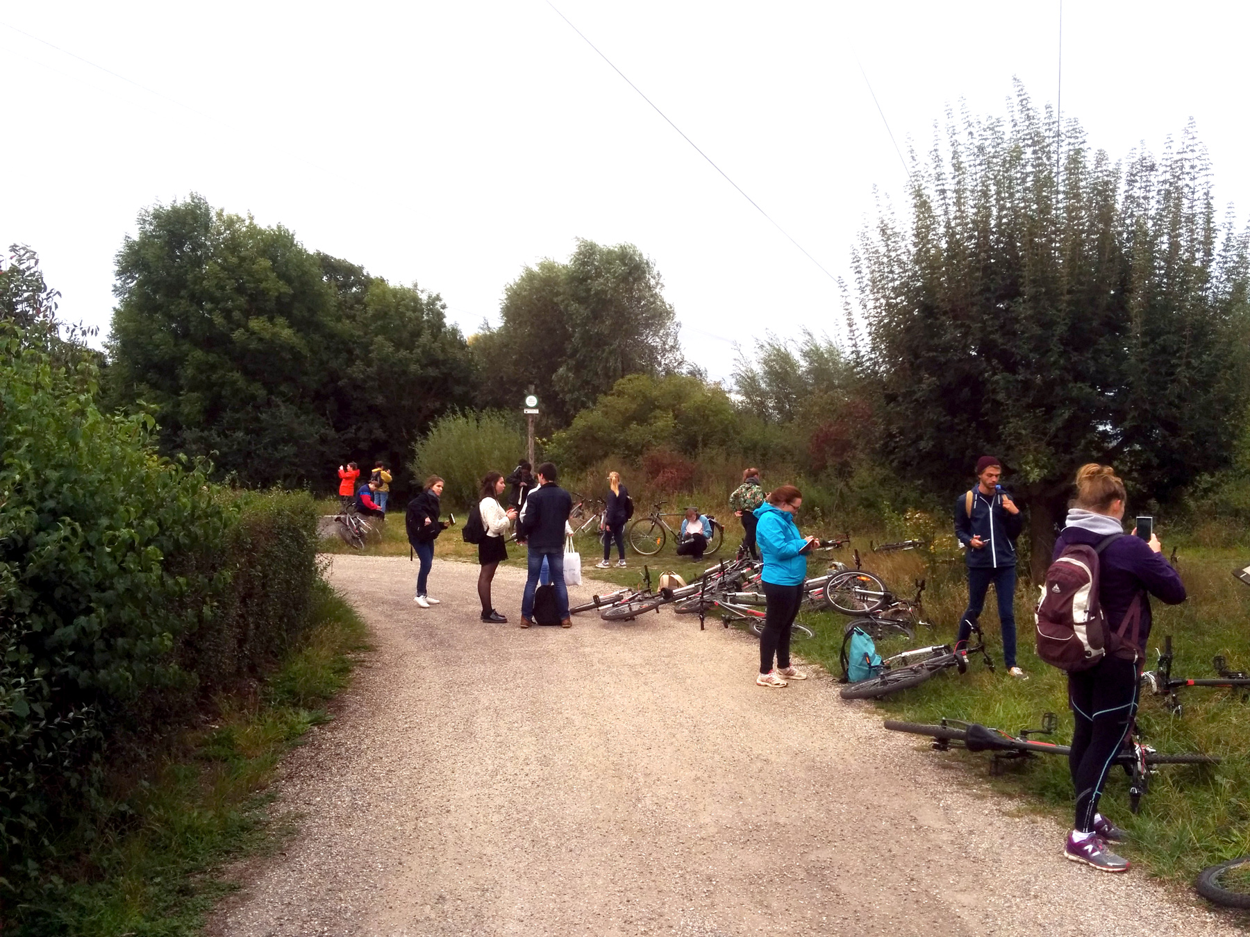 Pour démarrer ce projet, nous nous lançons dans une grande promenade à vélo qui nous emmène sur les périphéries de la ville. Nous traversons le terrain, nous arrêtons régulièrement pour saisir des formes, des images, du son… sentir les odeurs, prendre l’air des contours…