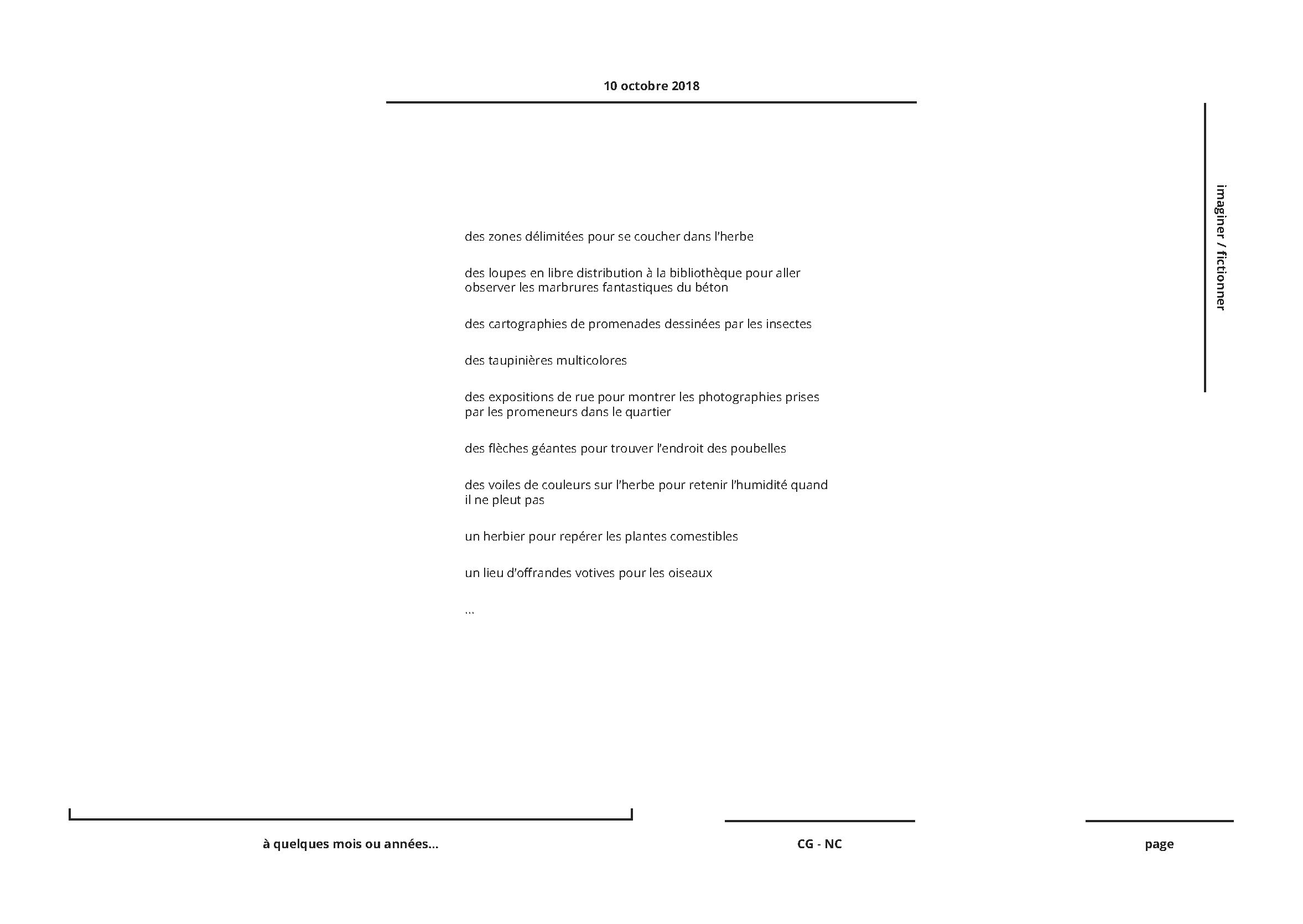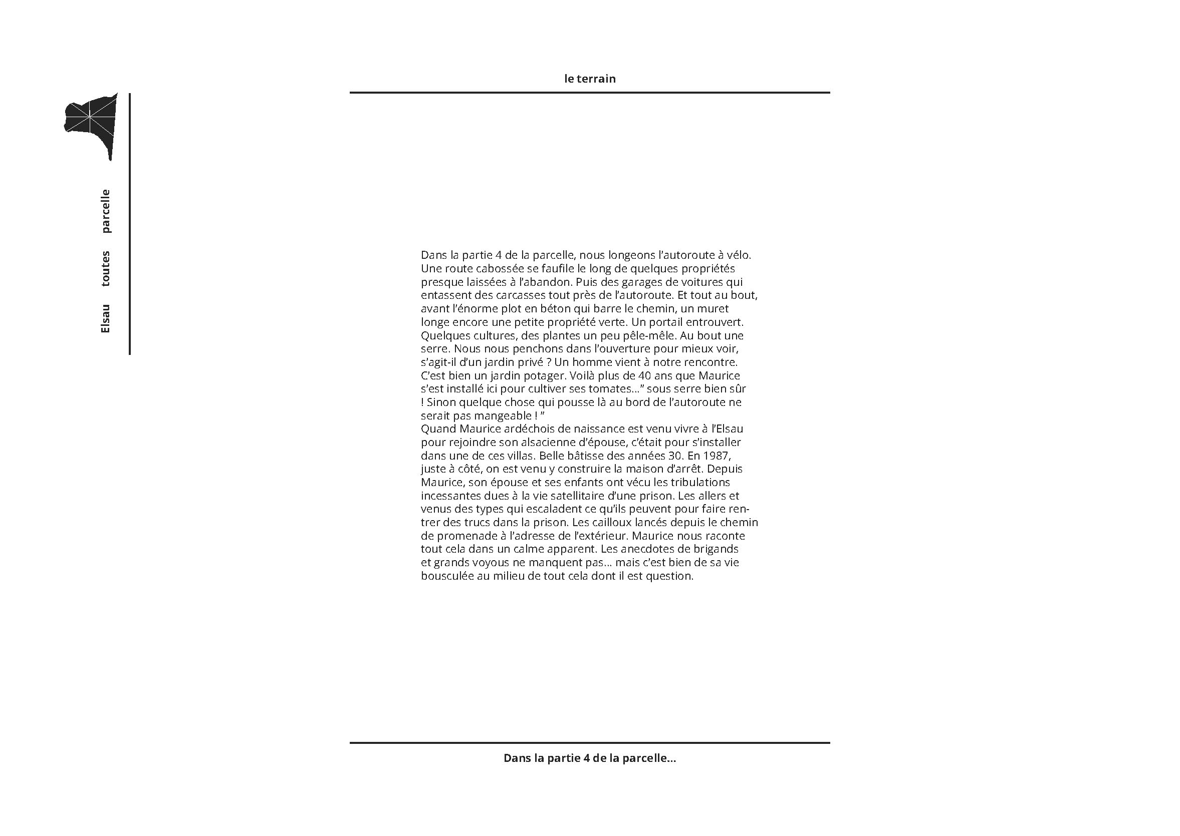 L’objectif de cette enquête est de réaliser un ensemble de représentations qui constitue un inventaire sensible des objets rencontrés sur le territoire. Cette démarche nous amène à observer mais aussi à rencontrer les habitants et les acteurs de ces espaces. Cet inventaire se développe finalement une édition sous forme d’atlas qui sera transmise au partenaire. Cet ouvrage pourra servir d’initiation à l’observation du territoire à d’autres “découvreurs”, d’augmenter les expériences de découverte, en proposant d’augmenter les points de vues et les regards singuliers.