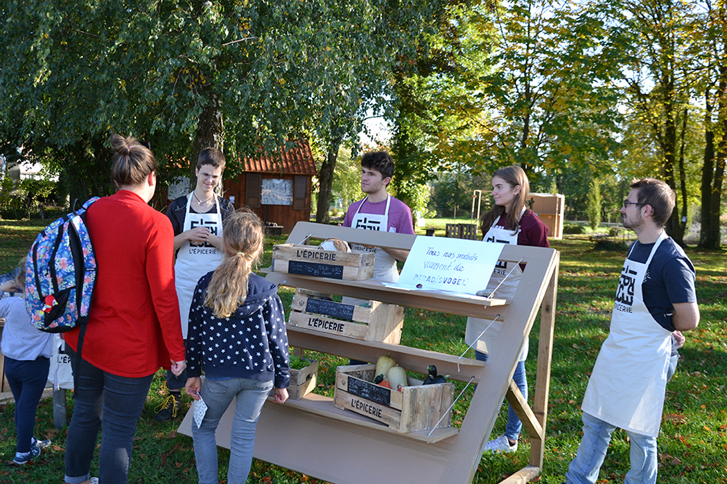Il s’agissait en l’occurrence, au cours d’un workshop d’une semaine (du 7 au 12 octobre 2019), de réaliser protoypes et maquettes en vraie grandeur et de les tester in situ au cours d’une présentation publique le samedi 12 octobre. Ont été ainsi proposés une identité pour la future épicerie, un totem de communication, une promenade à lire sur la voie verte, un atelier de réparation intergénérationnel… toutes ces propositions traduisant une volonté de se réapproprier le village et de vivre « local ».