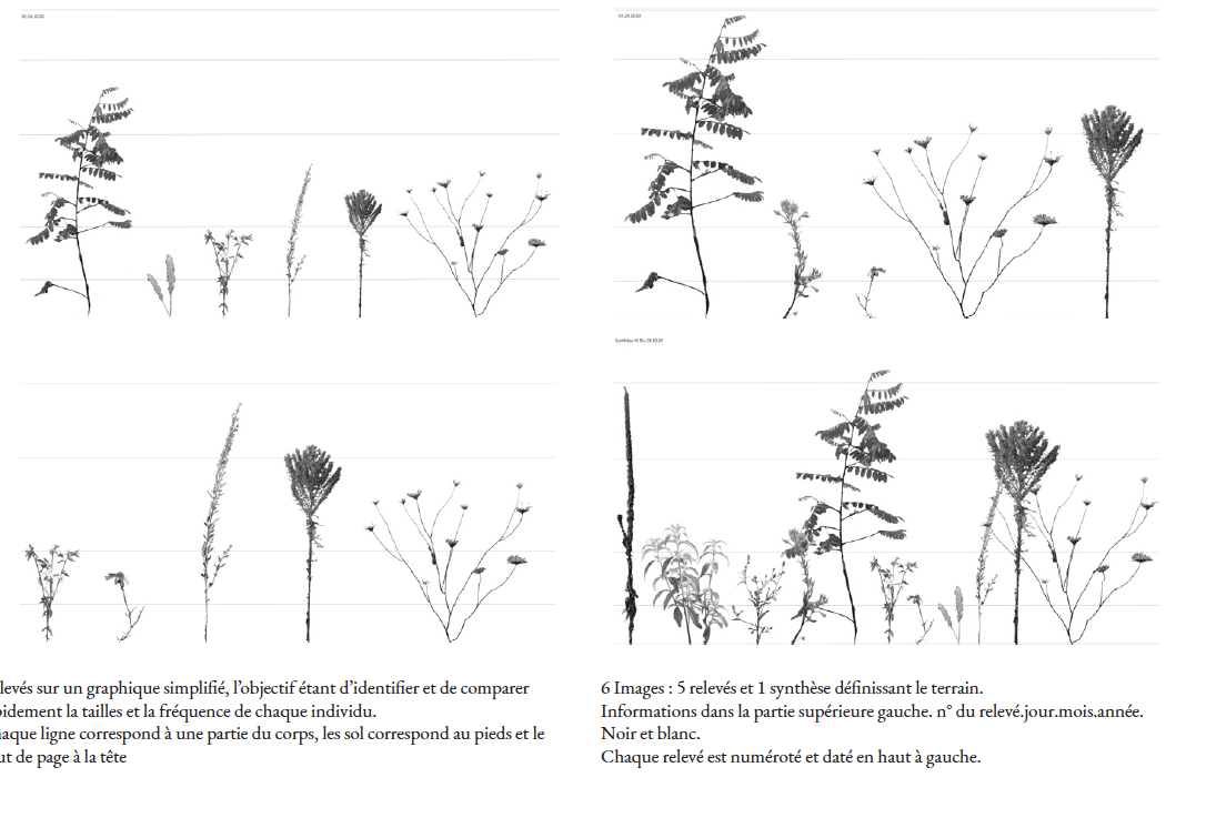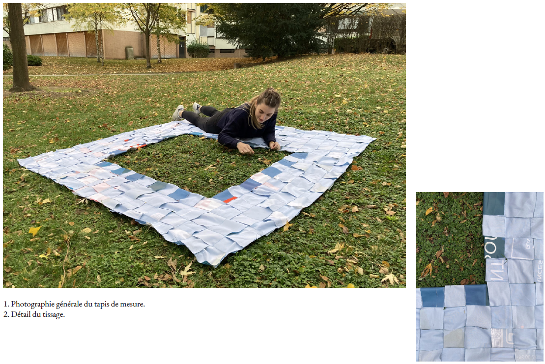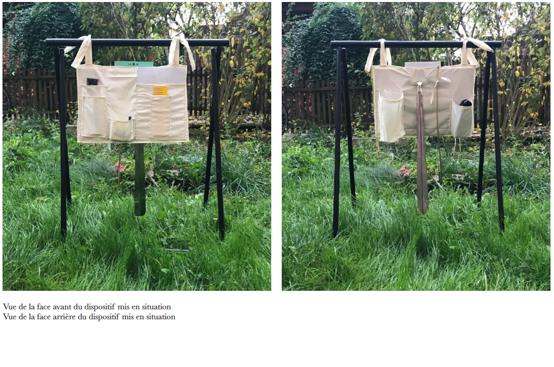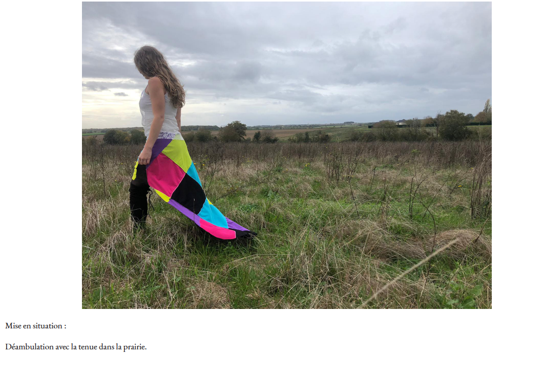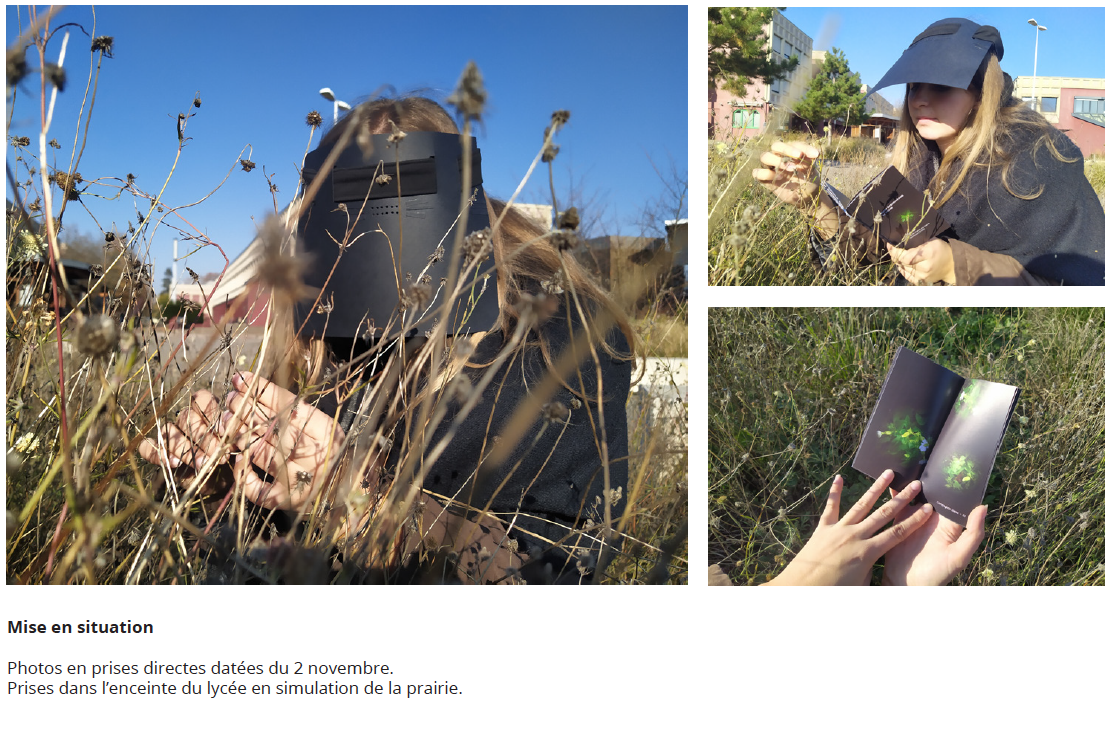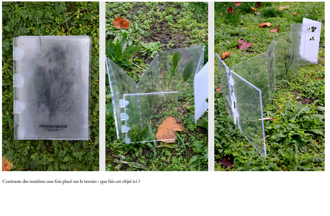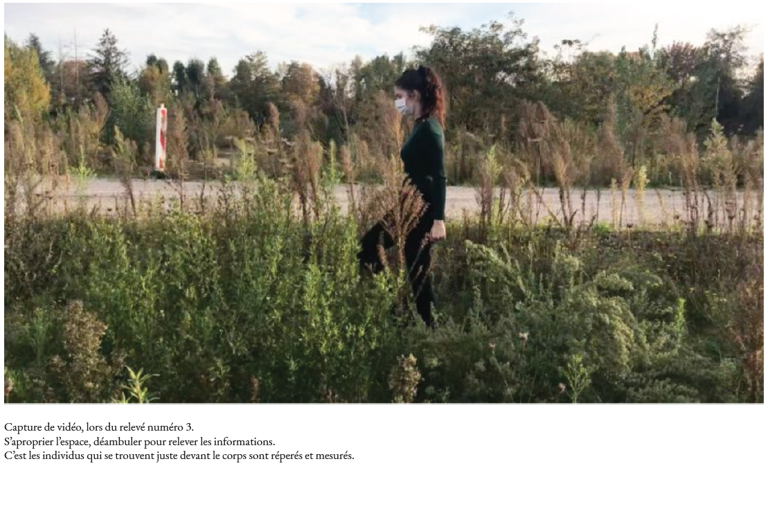 La recherche a duré 6 semaines : 1 séance de rencontre avec Audrey Muratet pour comprendre sa pratique et sa recherche de terrain puis marche collective performative, 1 séance de contact individuel avec le terrain, 2 séances de production en atelier, 2 séances entre terrain et atelier + 1 séance de restitution en novembre.
