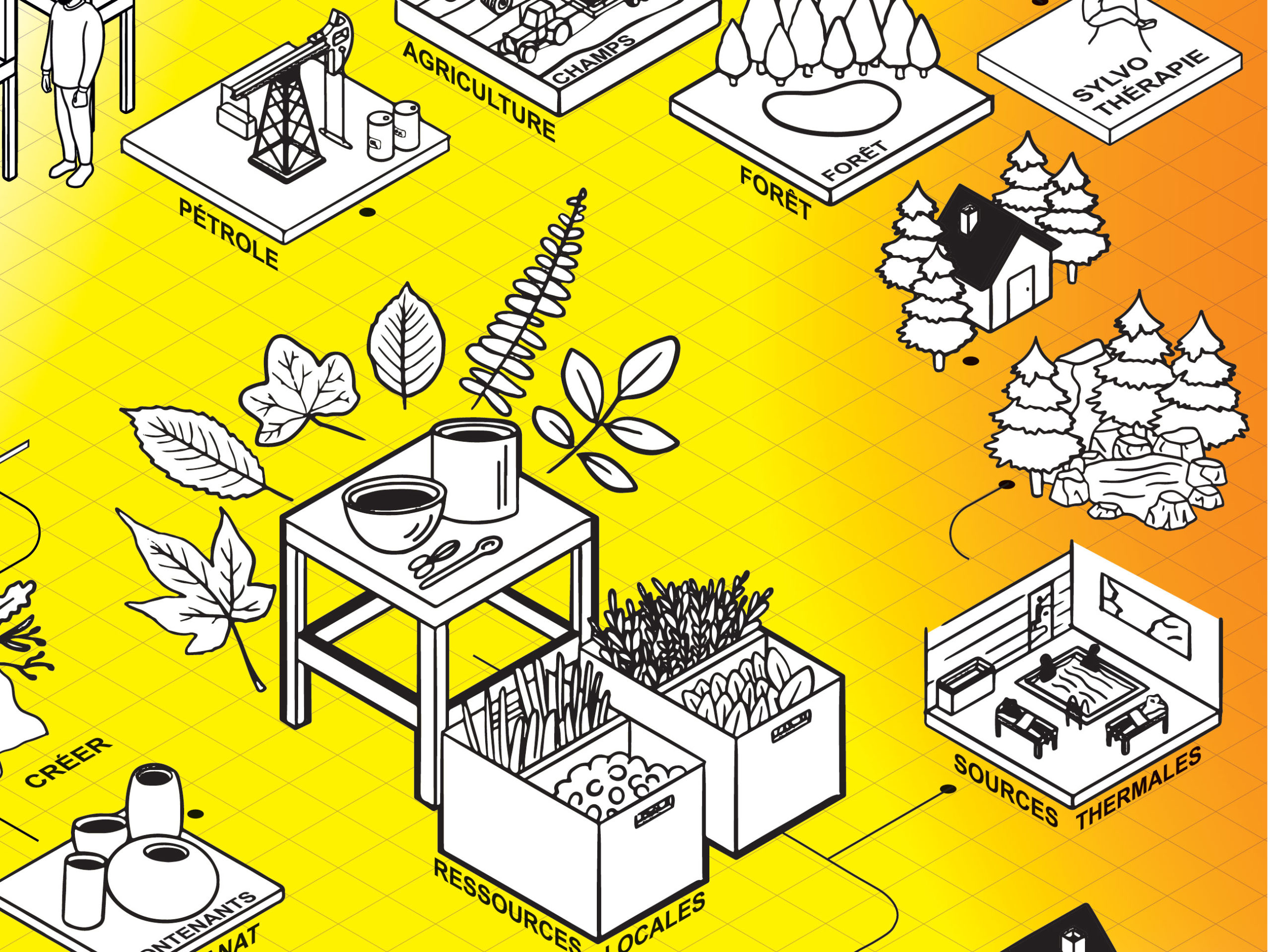 À la suite de cette collaboration, les étudiants de première année ont poursuivi des axes particuliers pour les transformer en un écosystème, un dispositif, montrant comment connecter le territoire par l’intégration d’artefacts.