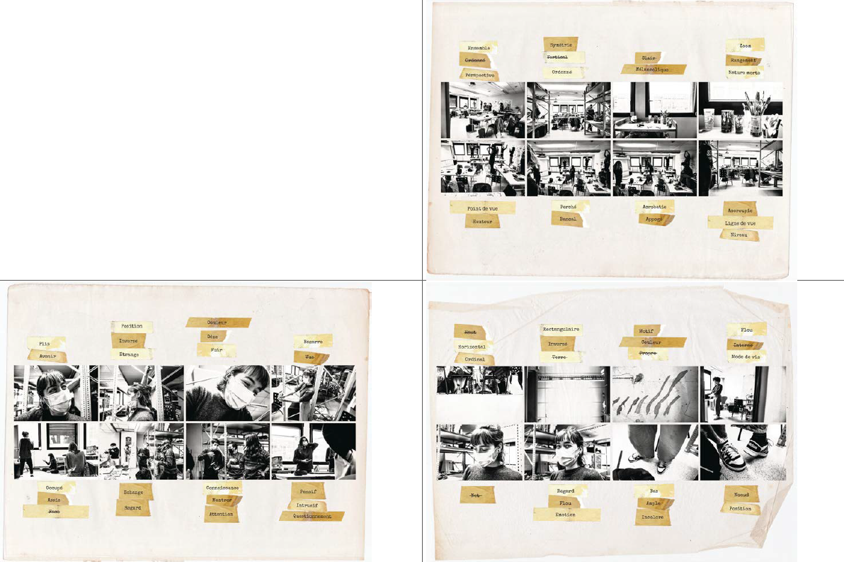 Nous proposons dans ce livret de synthèse des méthodologies d’approche de terrain en arts visuels à l’usage de designers en formation. Le travail essentiellement photographique est ici mené en réponse à l’ouvrage exercices de franck leibovici et howard becker (2019). Nous tentons une réponse presque littérale. Presque car les conditions de travail dans laquelle la pandémie nous place ne permet pas de les effectuer sans les modifier, sans les tordre, sans les interpréter finalement. Nous noterons par ailleurs que nous transposons les exercices proposés en partitions (scores) collectifs. Comment imaginer ainsi le photographe et le sociologue nombreux ? L’enjeu consiste donc à amener les étudiants à développer un regard sur des lieux et des situations et à réaliser des dispositifs d’exposition permettant de rendre visible des dimensions nouvelles, développant les qualités d’observation.