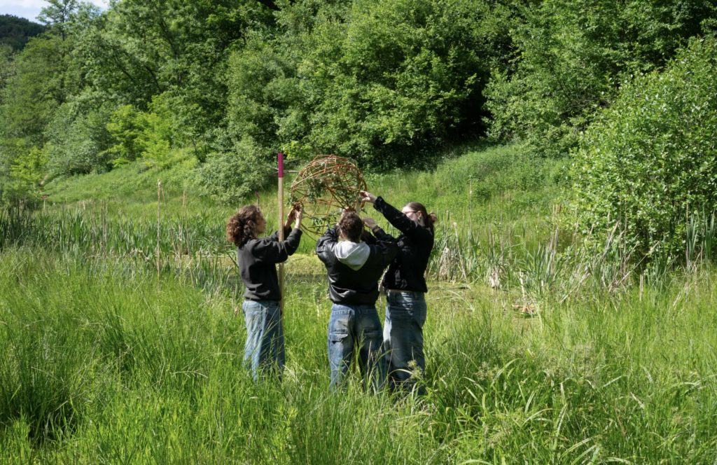 Collaboration entre le PNRVN et la formation DSAA InSituLab du lycée Le Corbusier sur un projet pédagogique engageant un temps de séjour et de réalisation sur le site du vallon du Soultzbach dans la commune de Langensoultzbach, avril-mai 2025