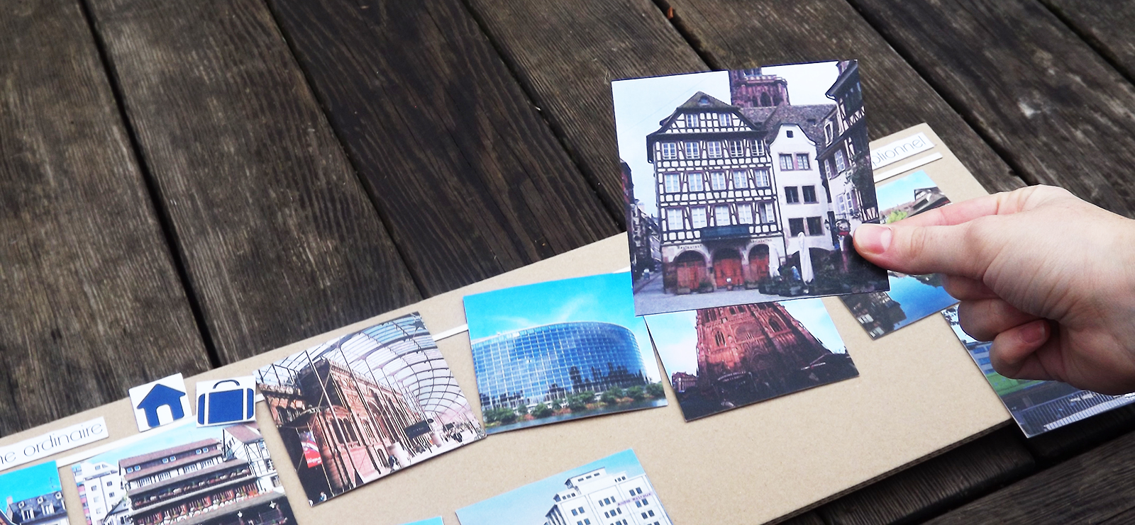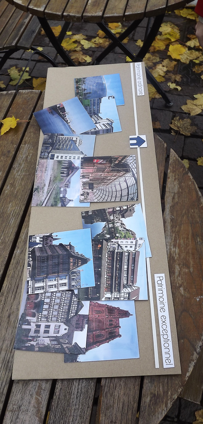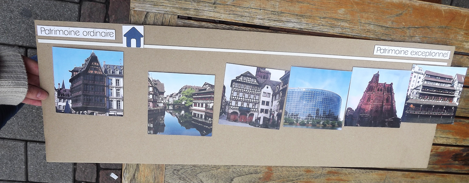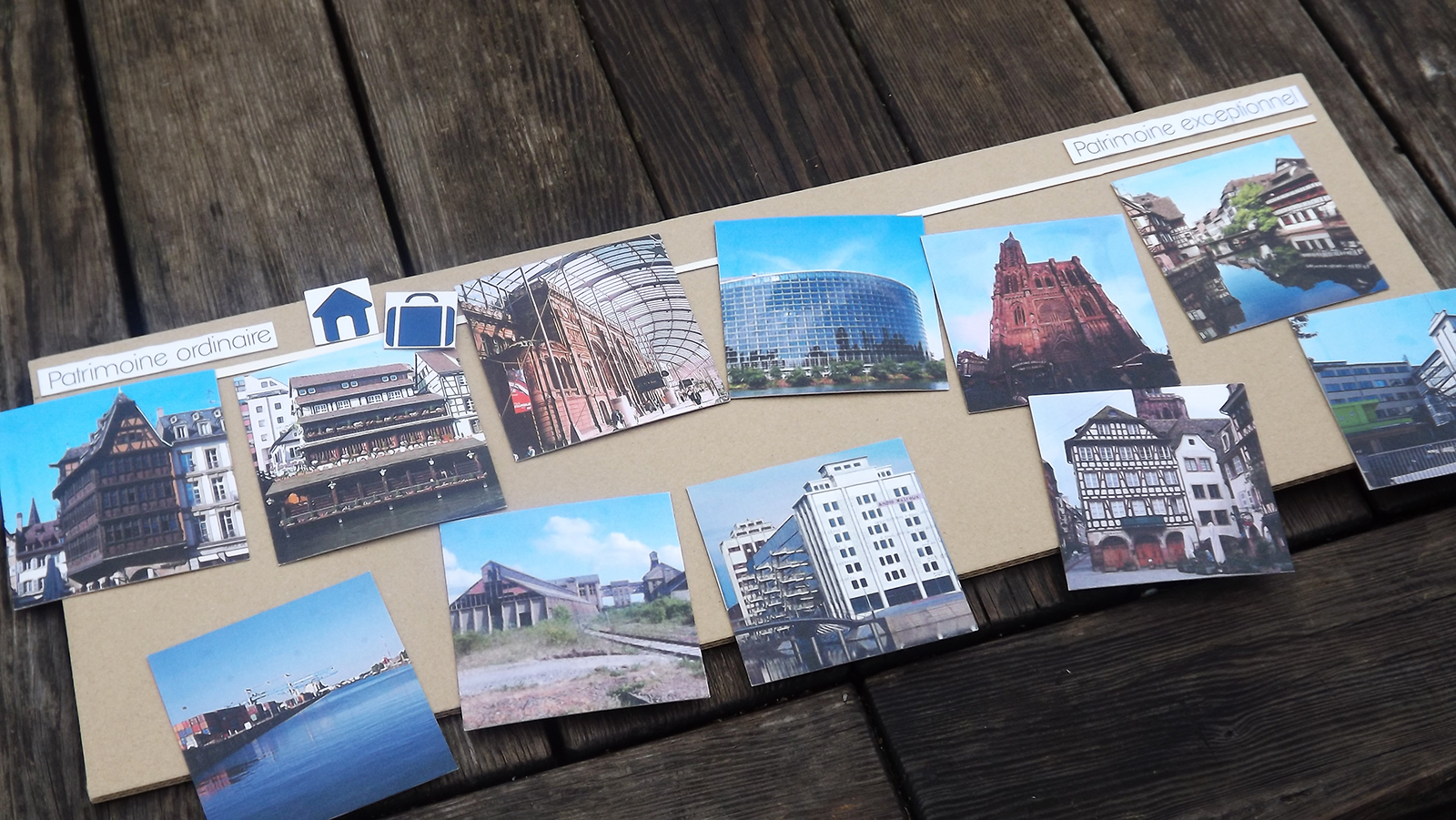 Lucile Geaiffrai-Derroisné et Alice de Bonnafos (Designers d’espace) se proposent de questionner les usagers de Strasbourg autour de leur définition du patrimoine. De la Place Kléber au Quai des Bateliers, munies de leur outil de médiation commun, elles ont interrogé touristes et habitants. Cet outil, sous forme de jeu de cartes, illustre onze lieux de la Capitale Européenne, à classer du plus commun au plus spectaculaire, en fonction de leur point de vue. Les deux étudiantes du DSAA souhaitent en tirer une réflexion sur la distinction du patrimoine ordinaire et du patrimoine exceptionnel.