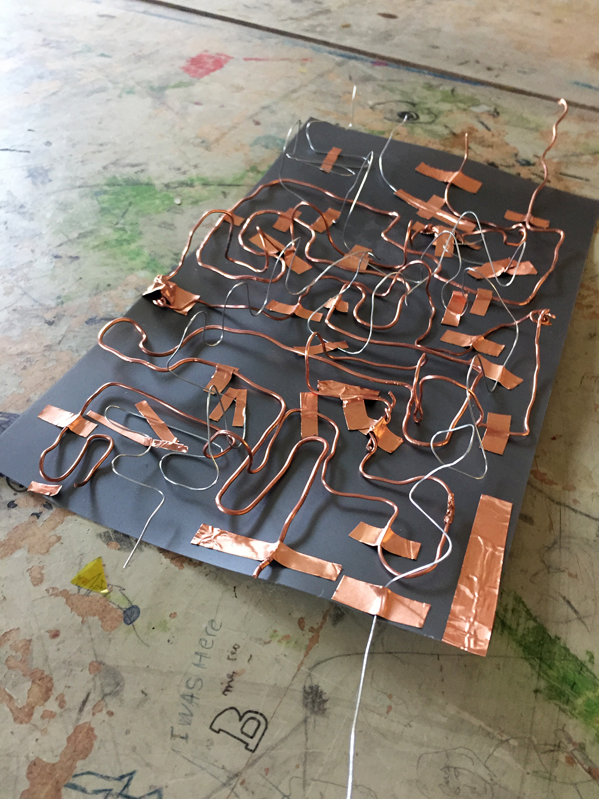 Notre jeu se base sur une plate-forme de 18.5 x 31 cm, sur laquelle se superposent (sans se toucher) les différents circuits. Ils correspondent chacun à une des quatre touches du clavier.