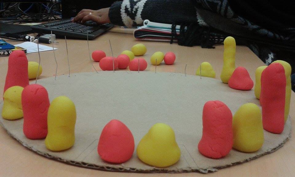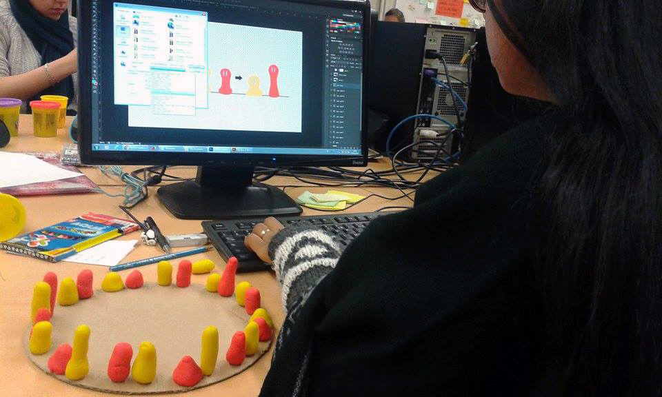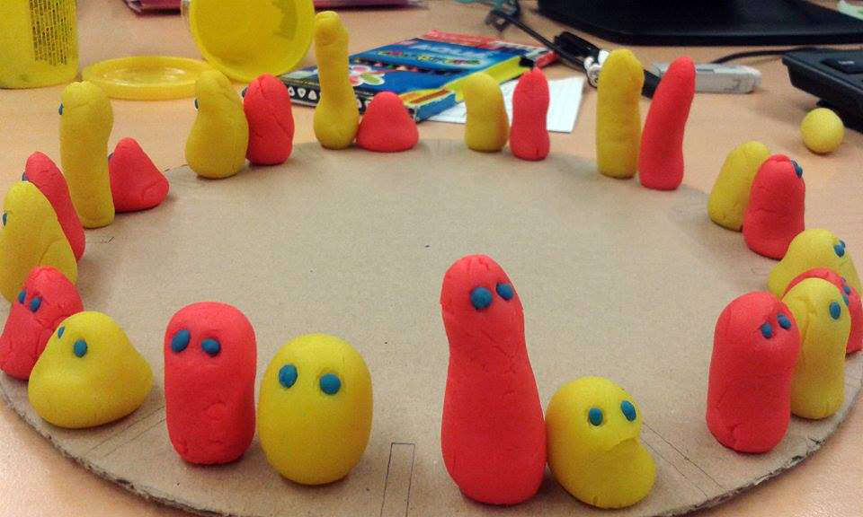 Notre but est de créer un zootrope. A partir d’un thème, la rencontre, on crée une animation de douze images. La technique autorisée est le modelage avec de la pâte à modeler.