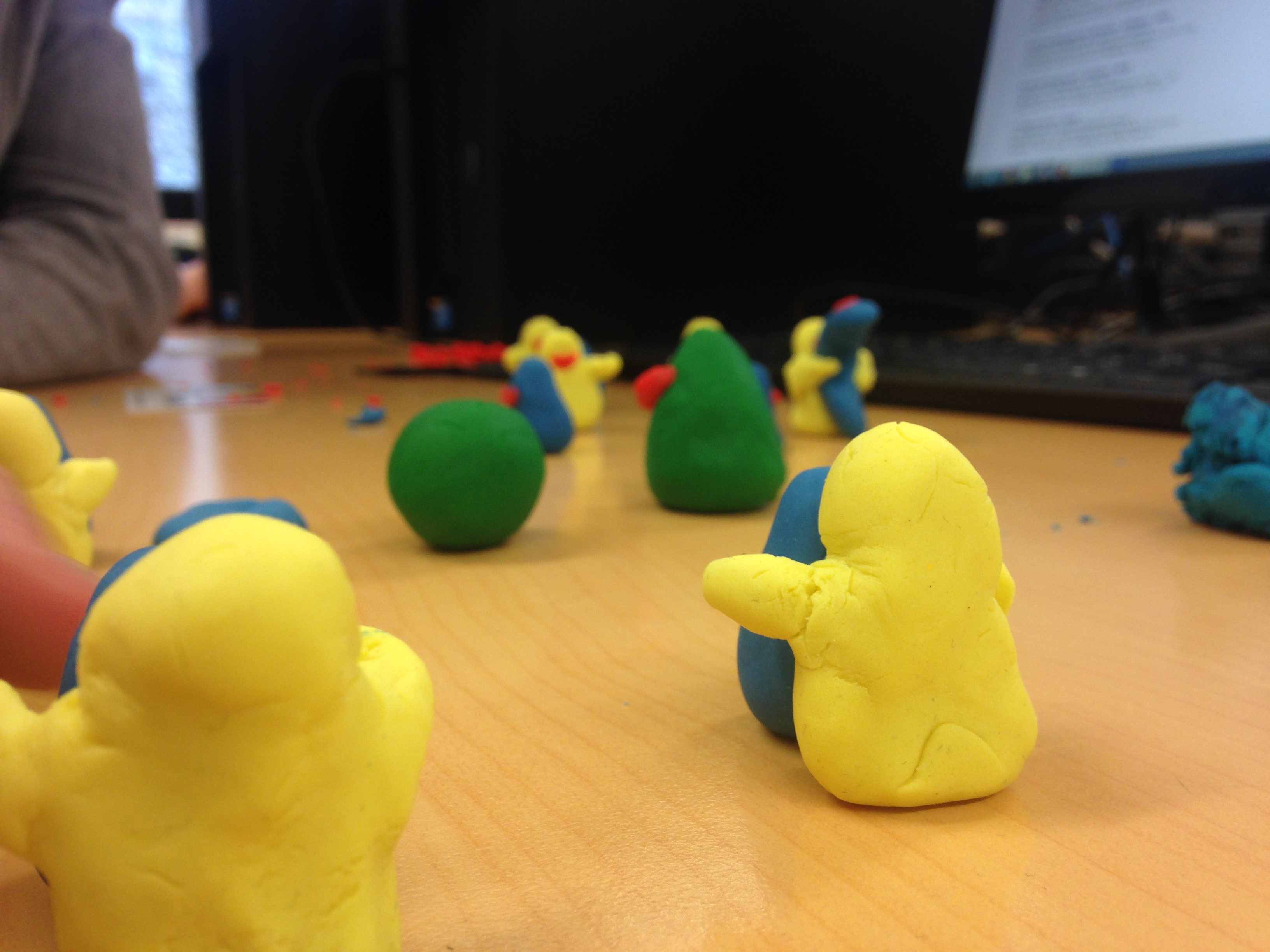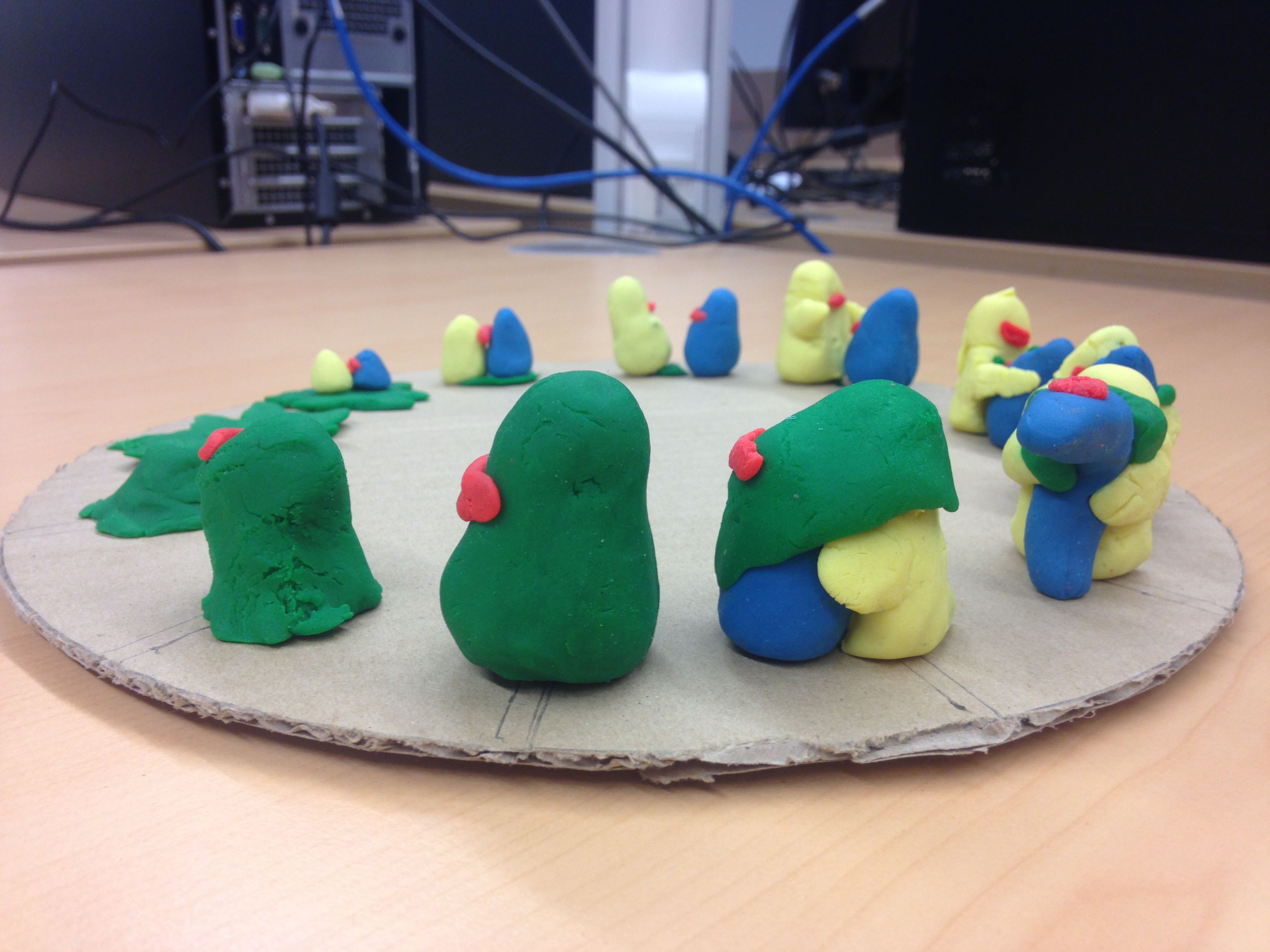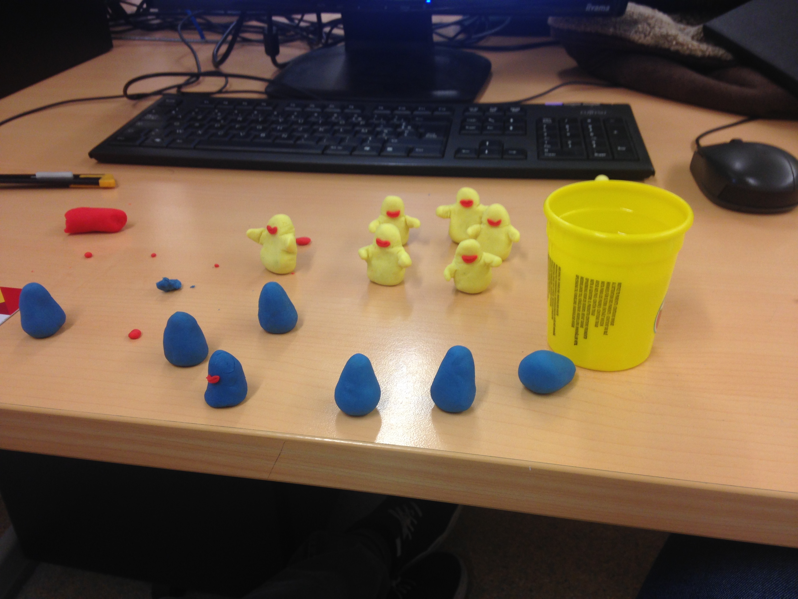 Aujourd’hui, nous avons réalisé un zootrope 3D grâce à de la pâte à modeler. Les figurines tournent sur le plateau et l’effet d’optique s’effectue grâce à un stroboscope. Le thème de l’action observée est “Tendresse/Câlin, Fusion/Rencontre“.